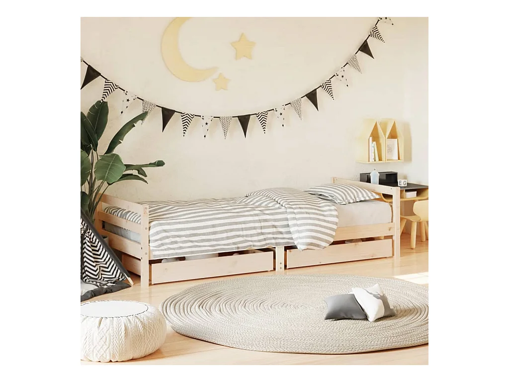 Cadre de lit d'enfants et tiroirs 90x190 bois de pin massif