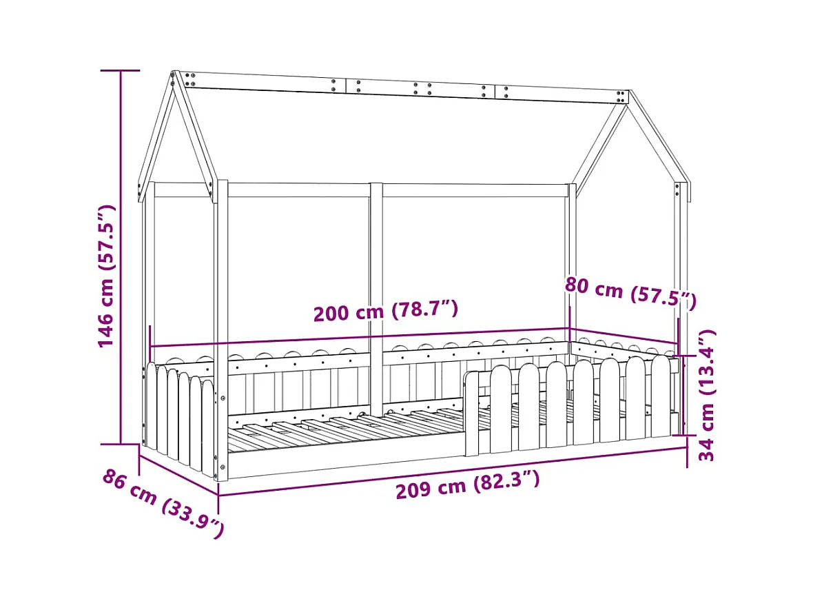 Cadre de lit d'enfants forme de maison sans matelas 80x200 cm