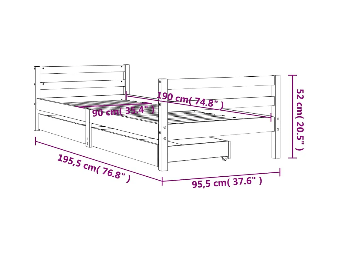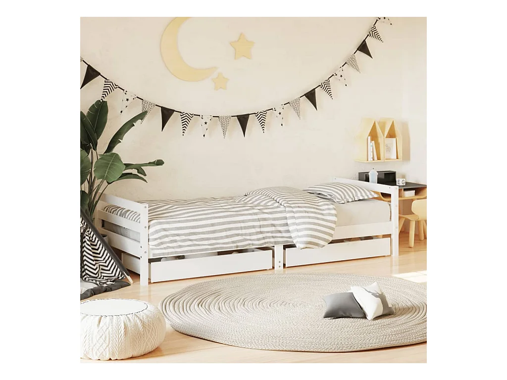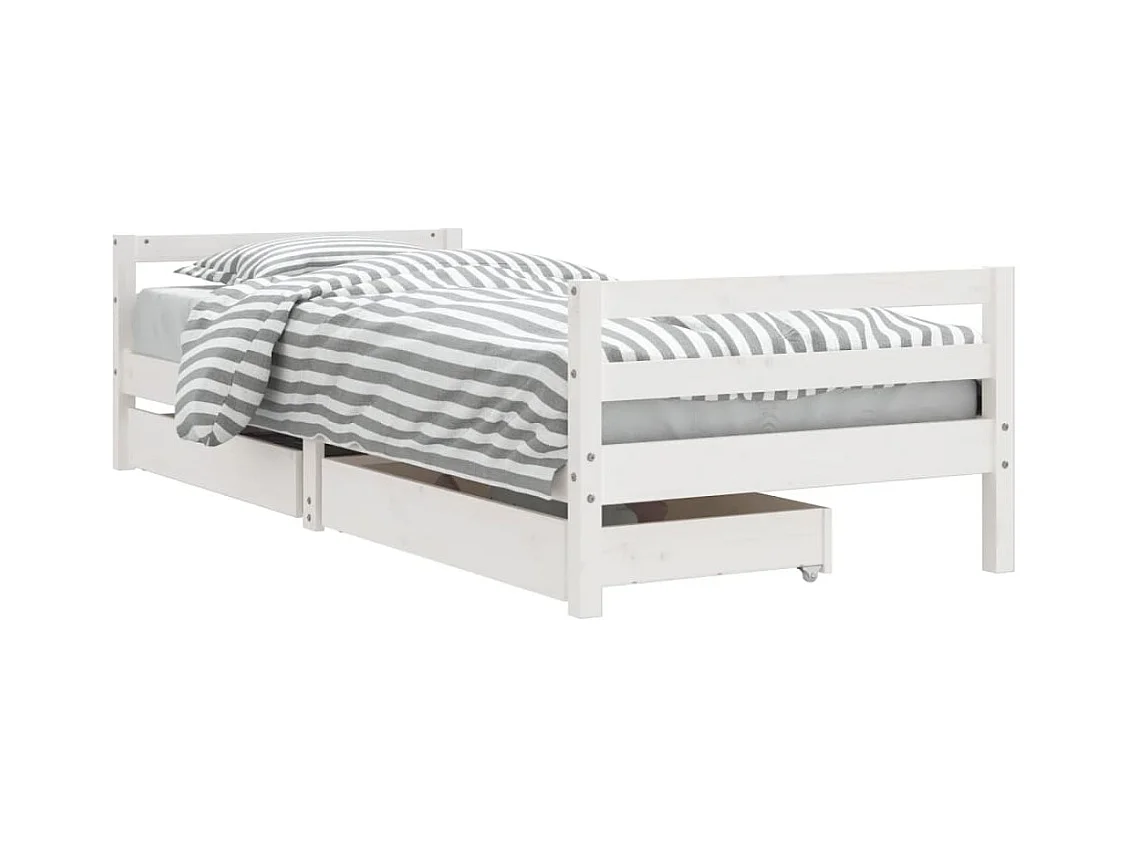 Cadre de lit d'enfants tiroirs blanc 90x190 bois pin massif