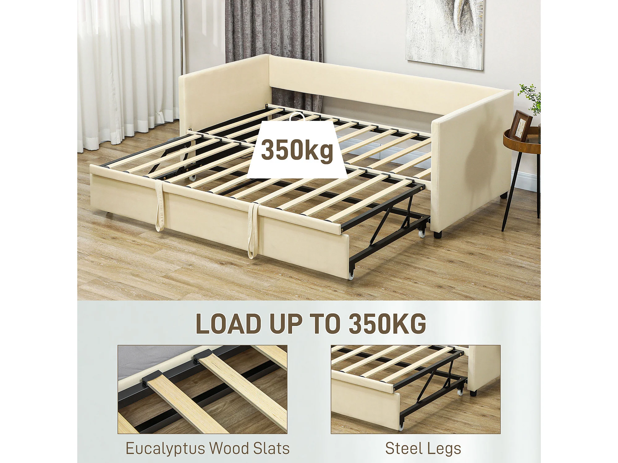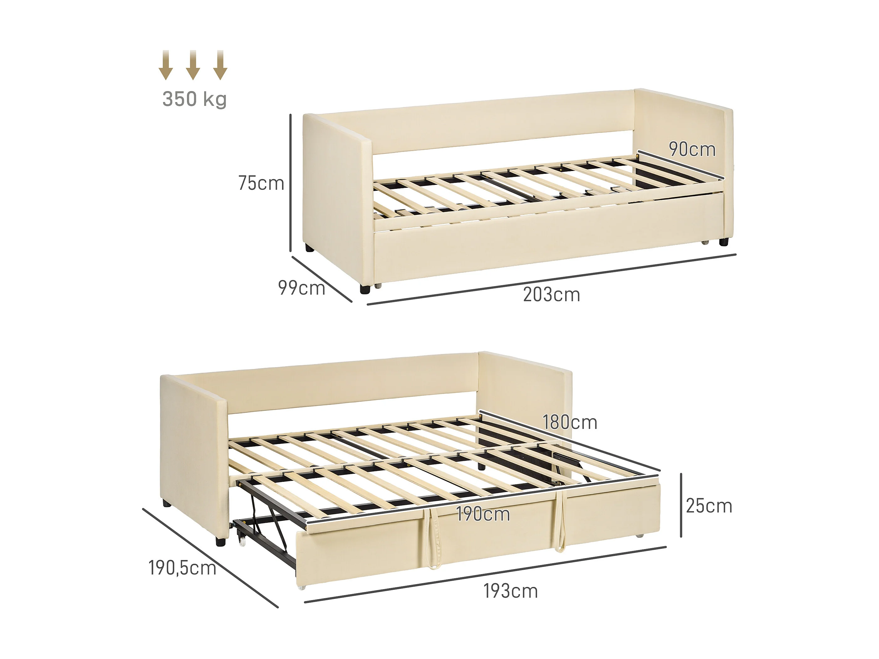 Cadre de lit deux-en-un - tête de lit, sommier inclus - dim. 203l x 190,5P x 75H cm - compatible matelas 190L x 90l cm - blanc crème