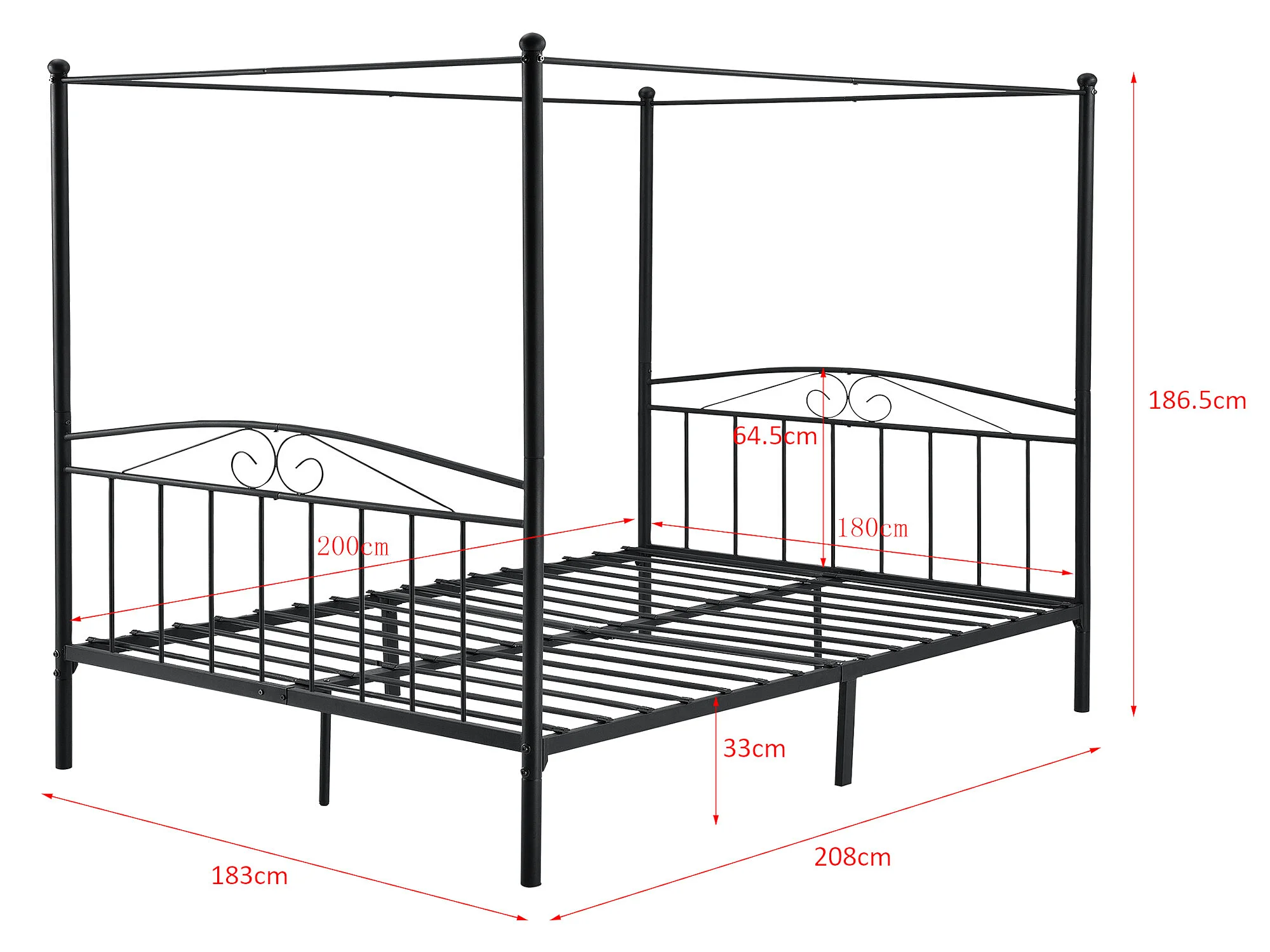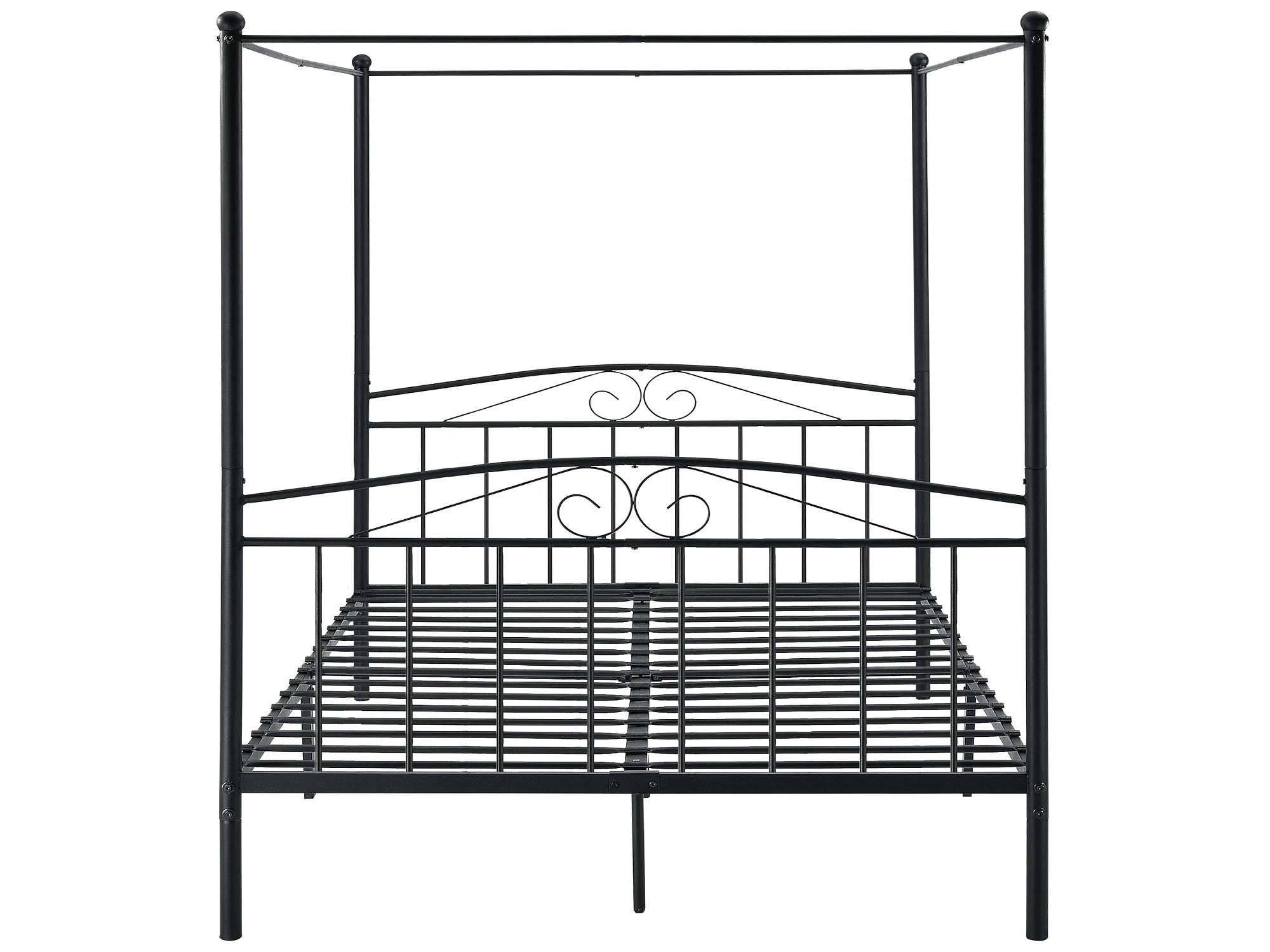 Cadre de Lit Double Lathi Baldaquin Métal 180 x 200 cm Noir Mat [en.casa]