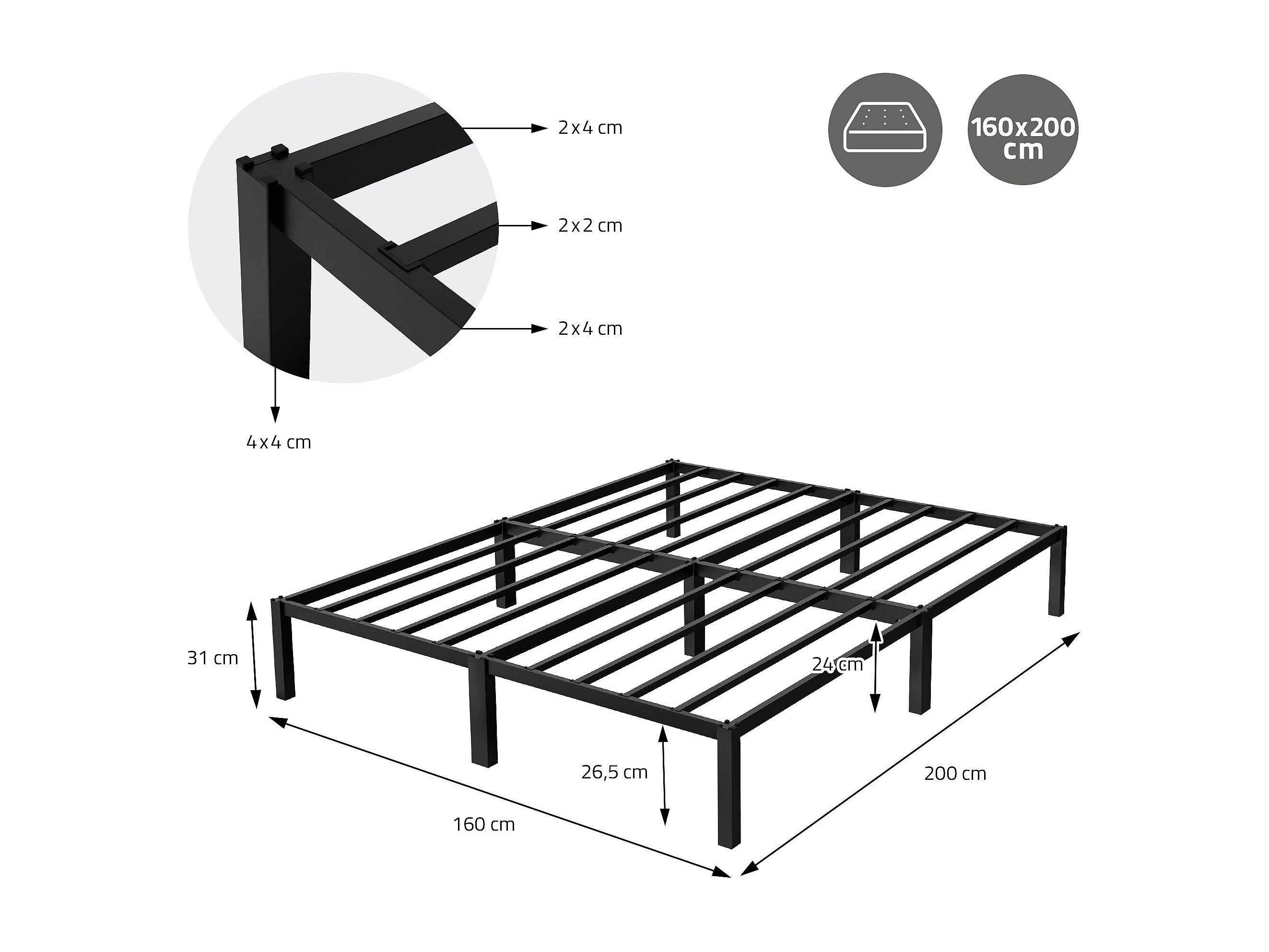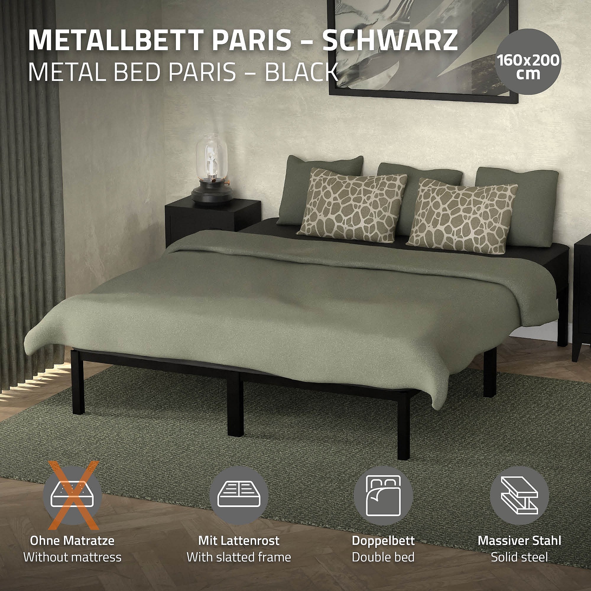 Cadre de lit en acier sommier à lattes noir moderne 160x200 cm ML-DESIGN