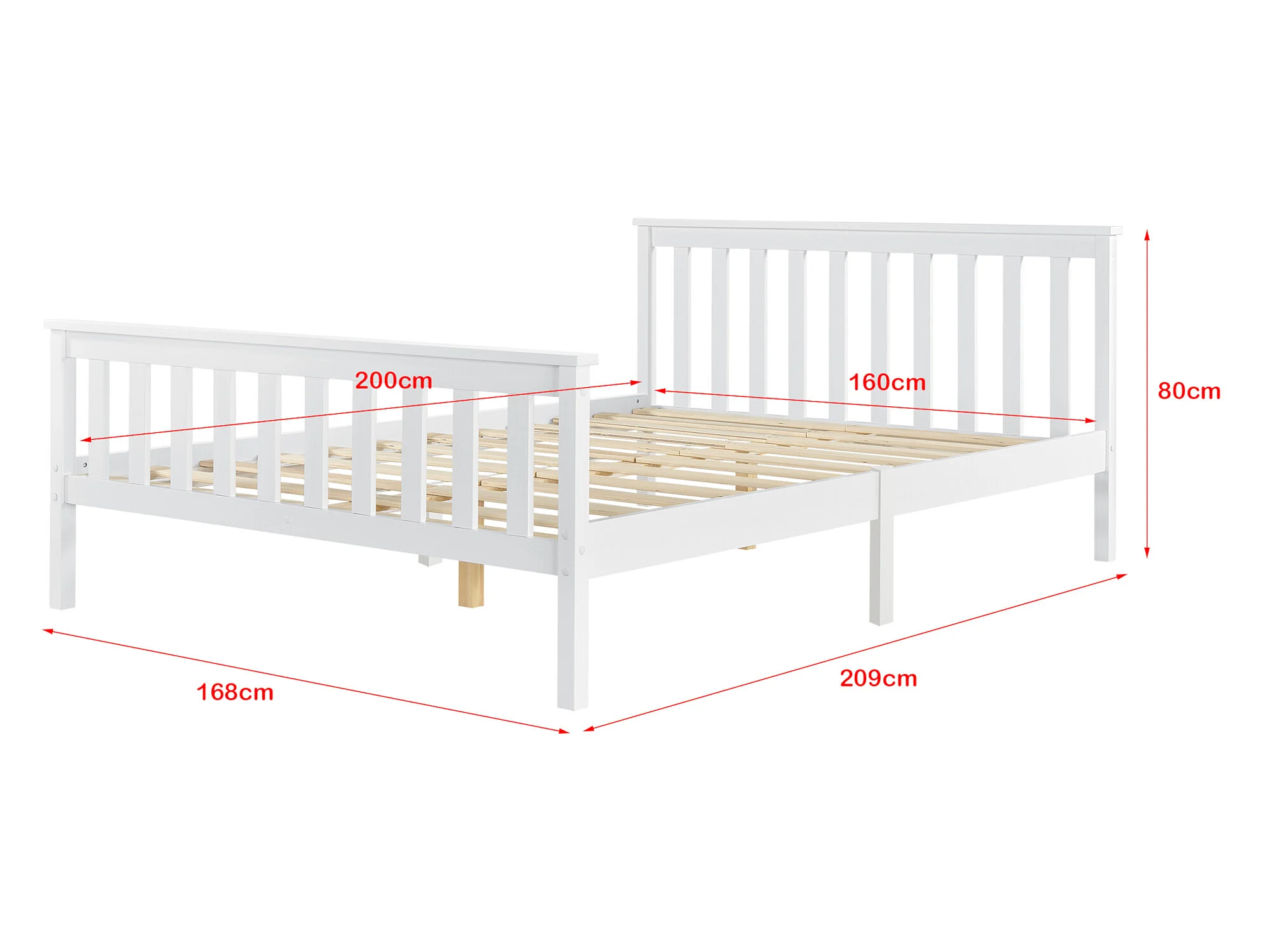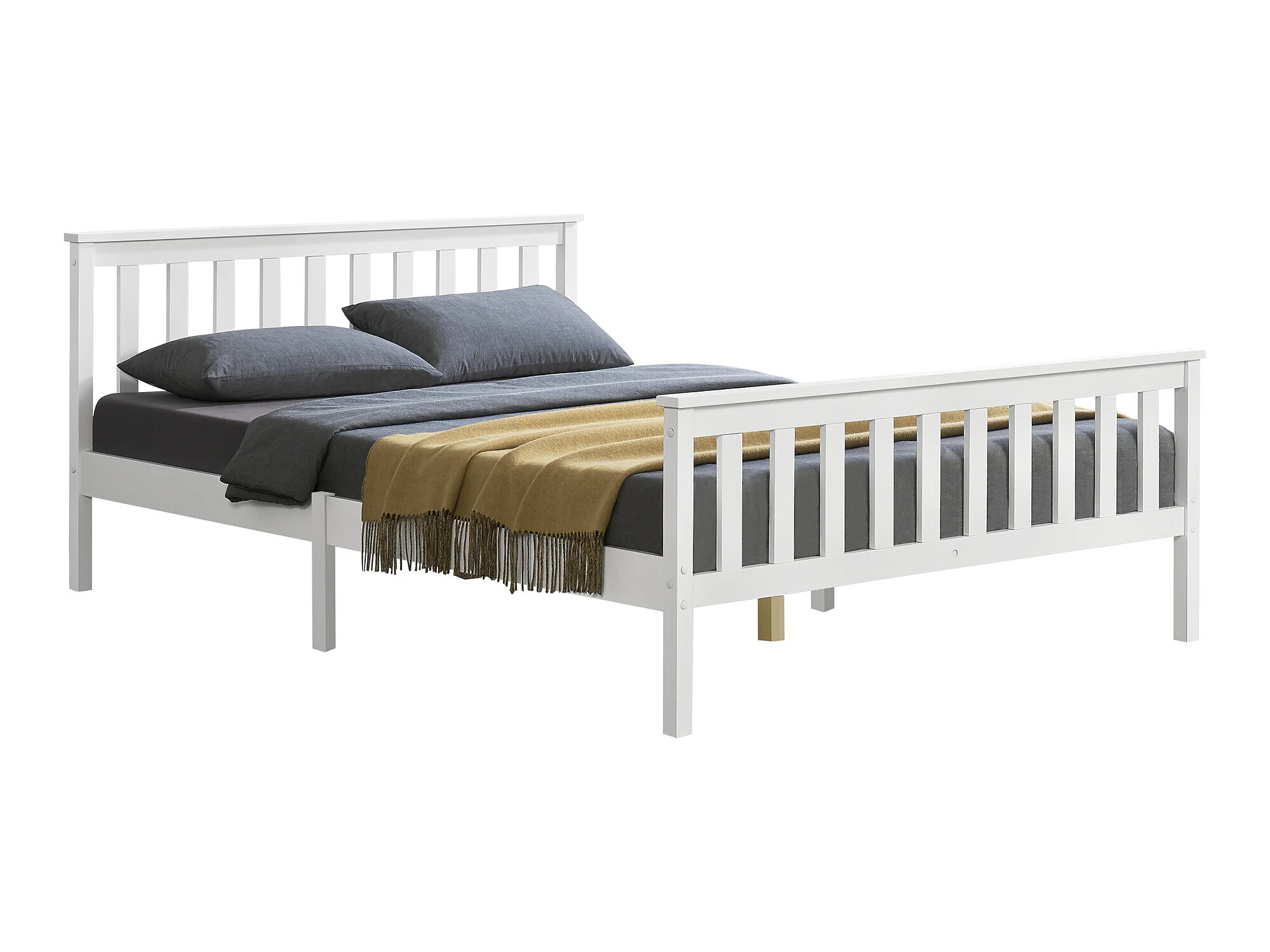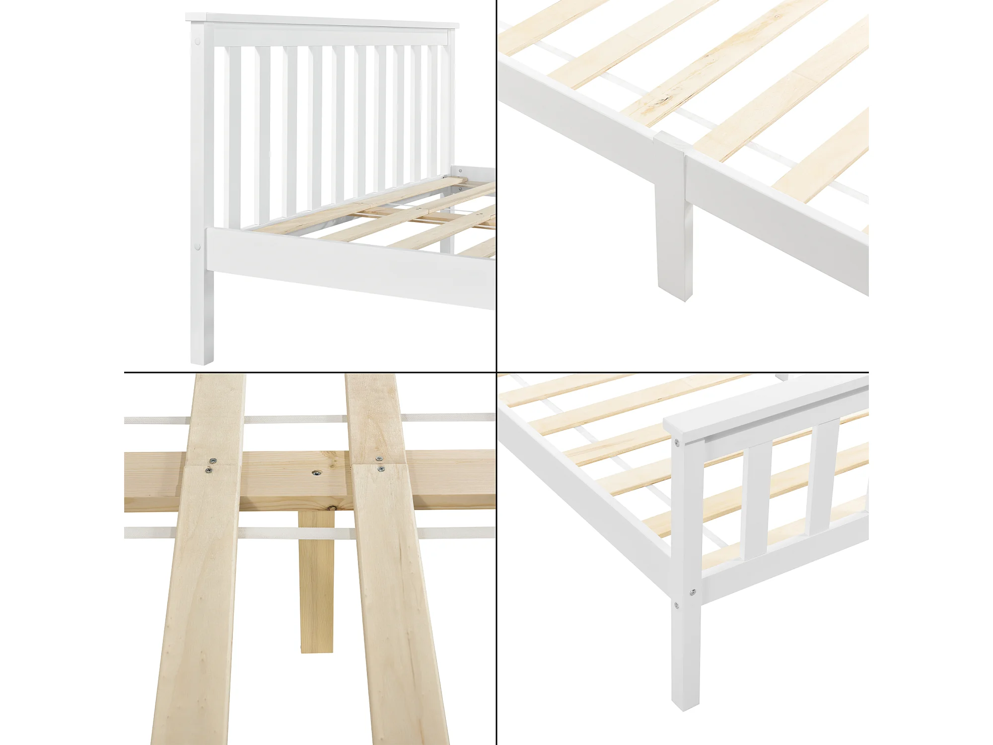 Cadre de Lit en Bois de Pin Breda 160 x 200 cm Blanc Mat Laqué [en.casa]