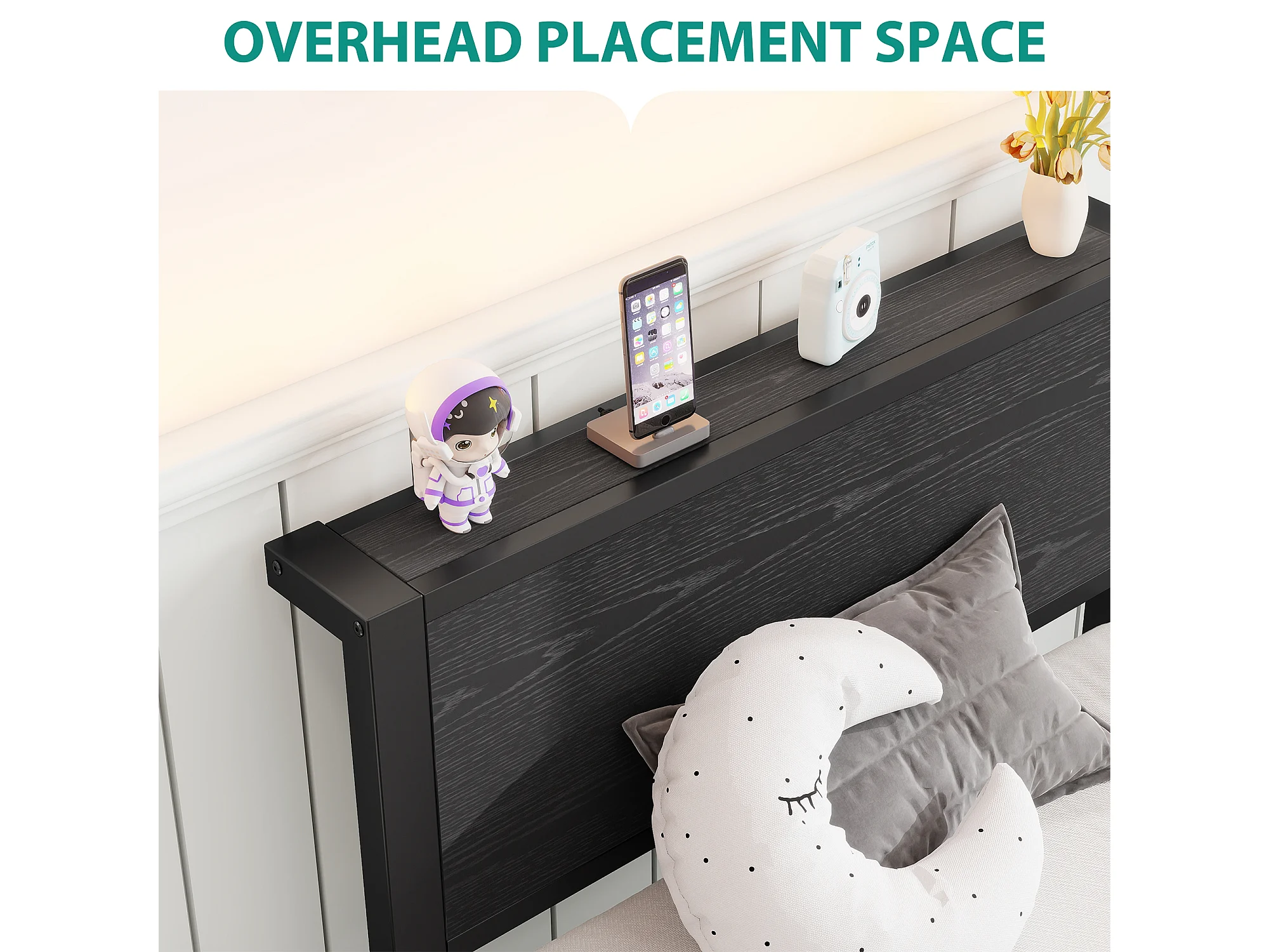 Cadre de lit en métal 90x200 cm avec tête de lit en bois- Lit simple noir - Sans matelas