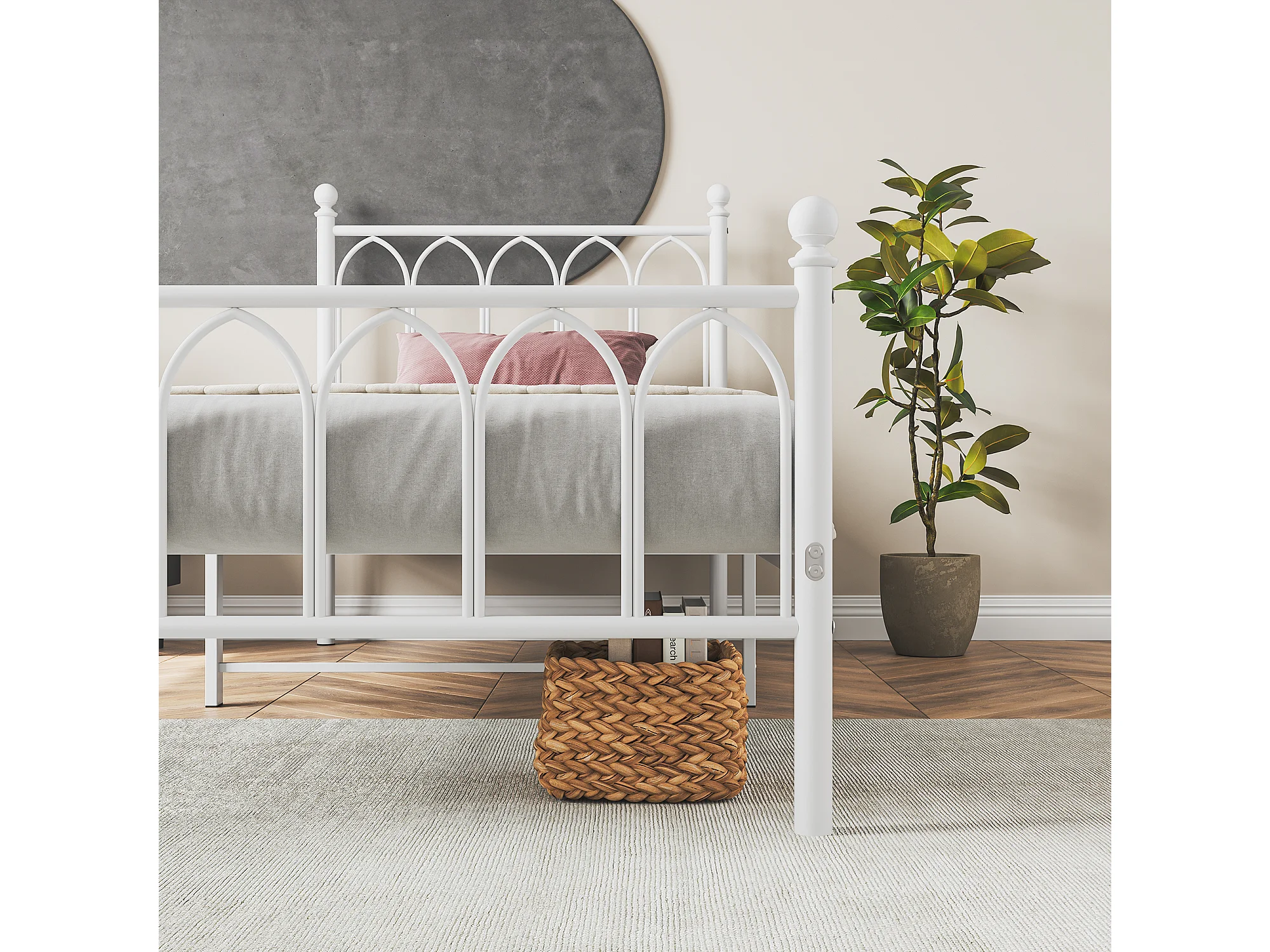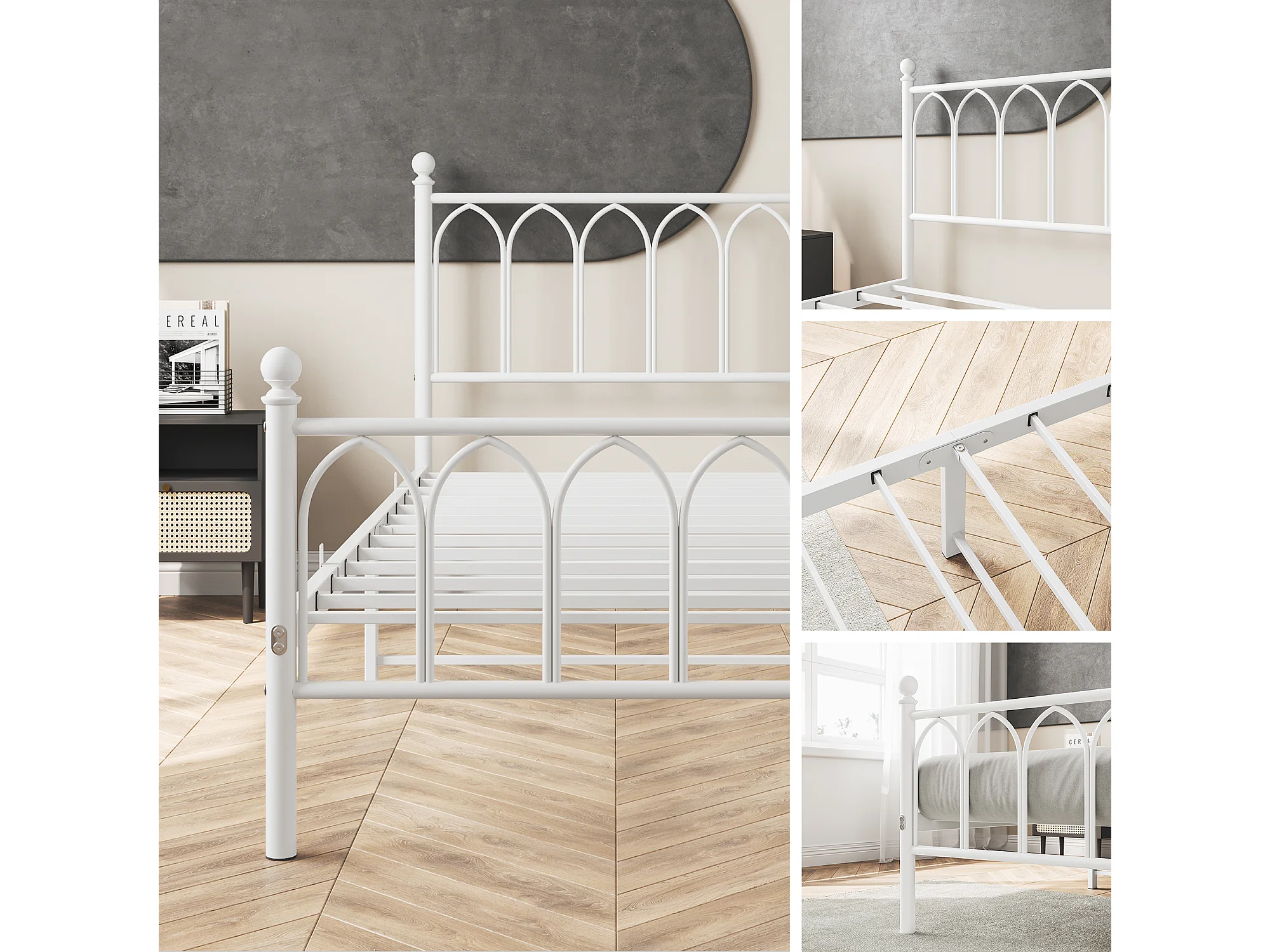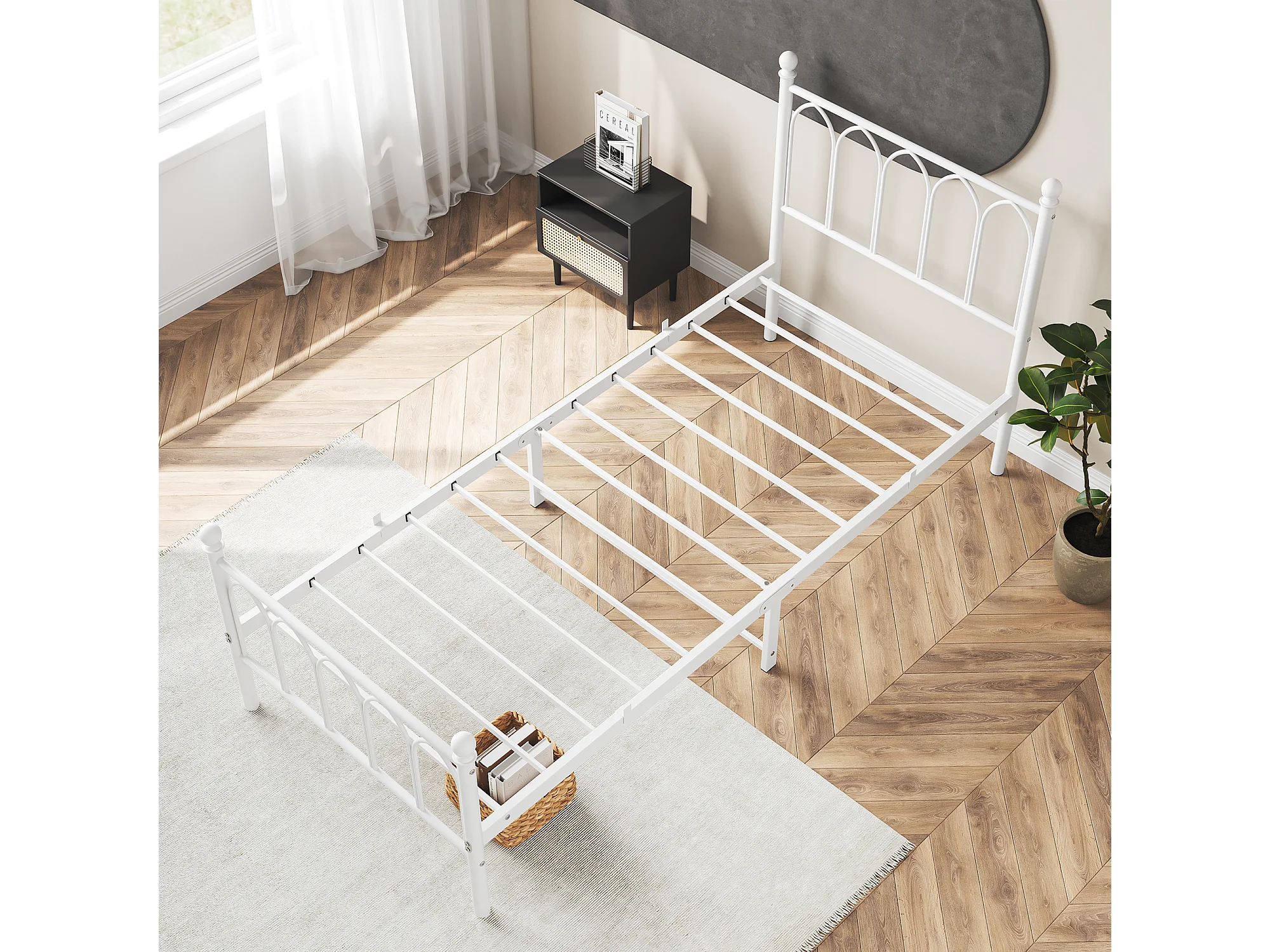 Cadre de lit en métal 90x200 cm - Lit simple avec tête de lit - Blanc