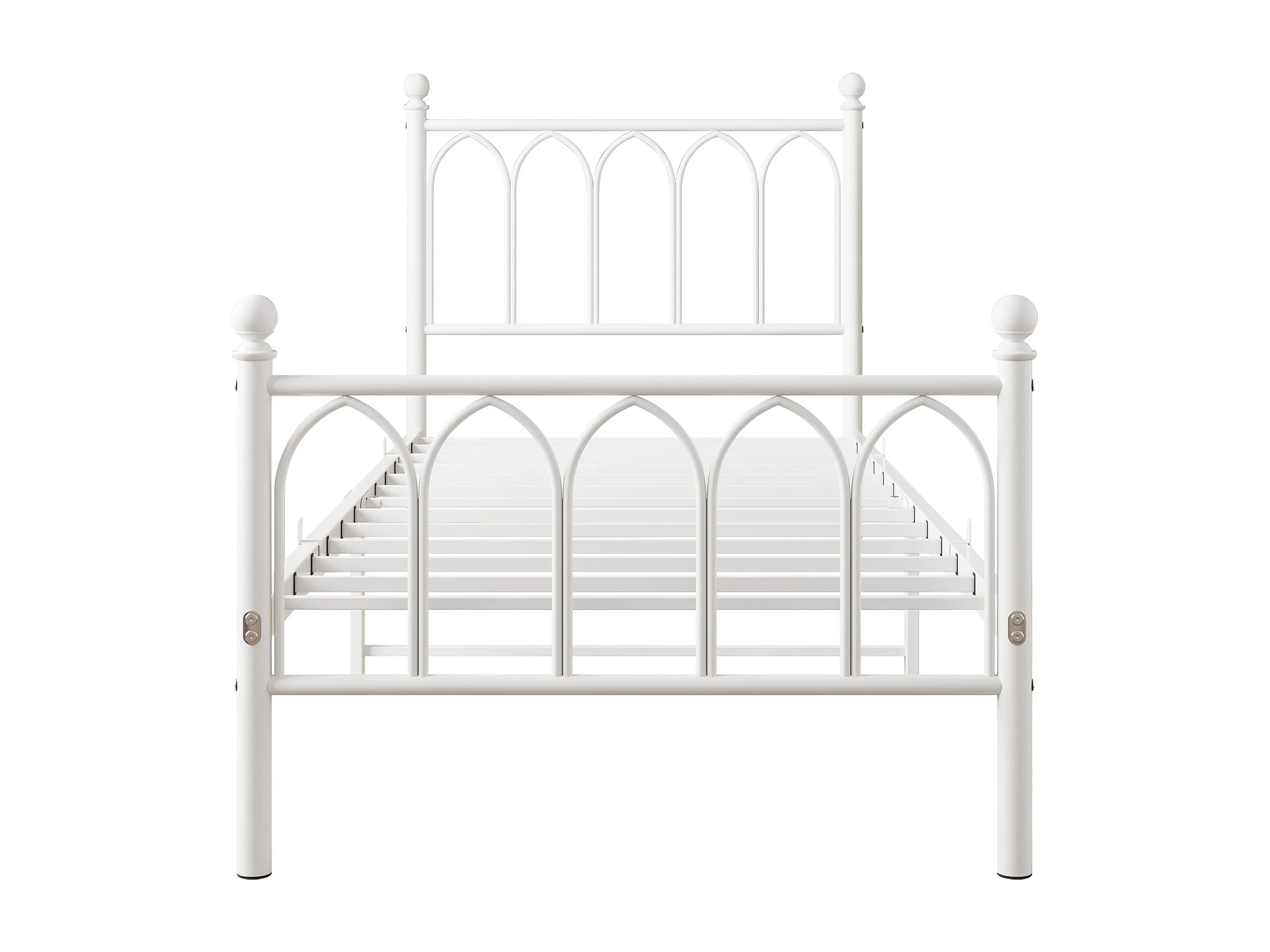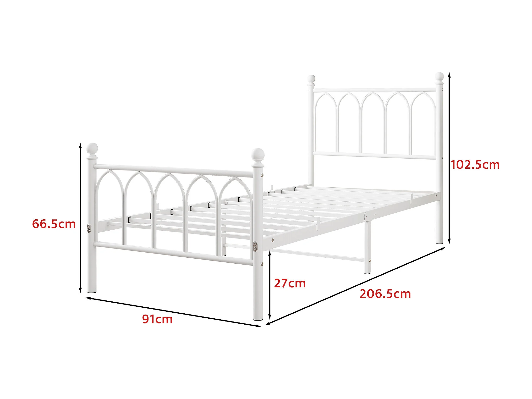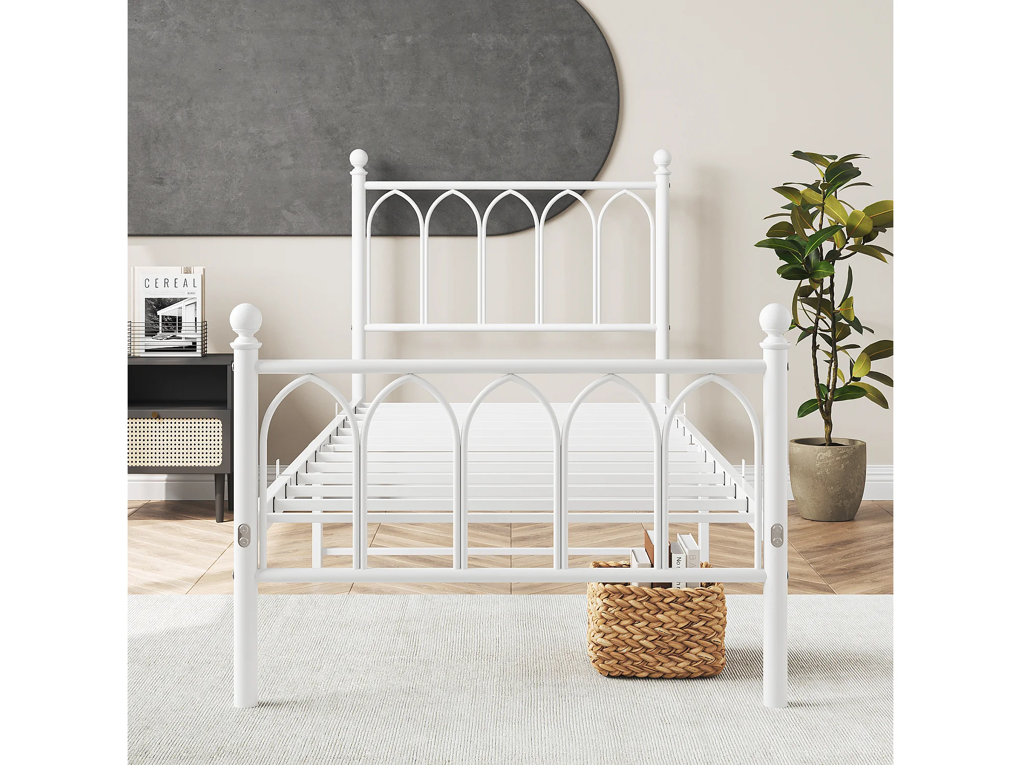 Cadre de lit en métal 90x200 cm - Lit simple avec tête de lit - Blanc