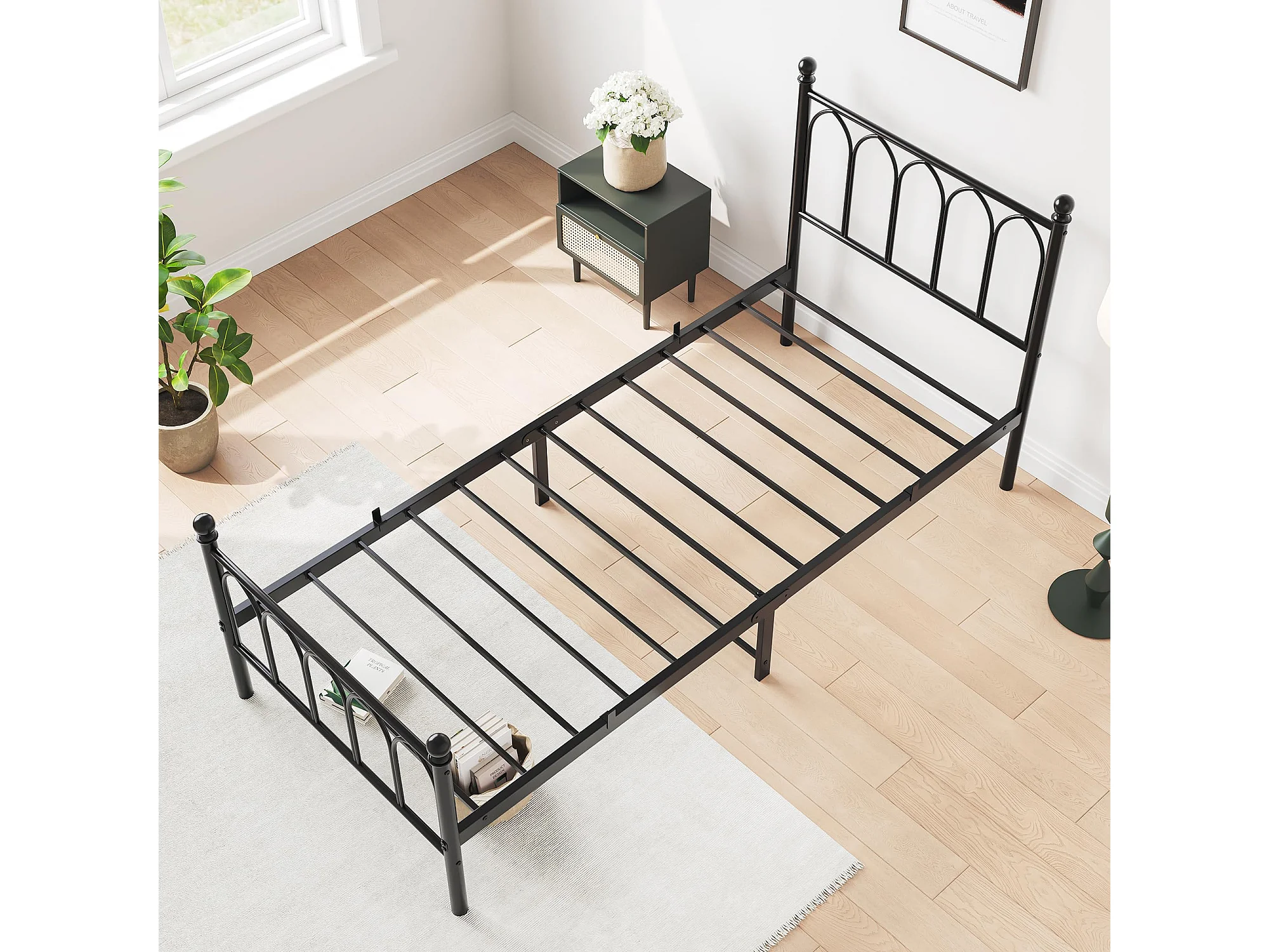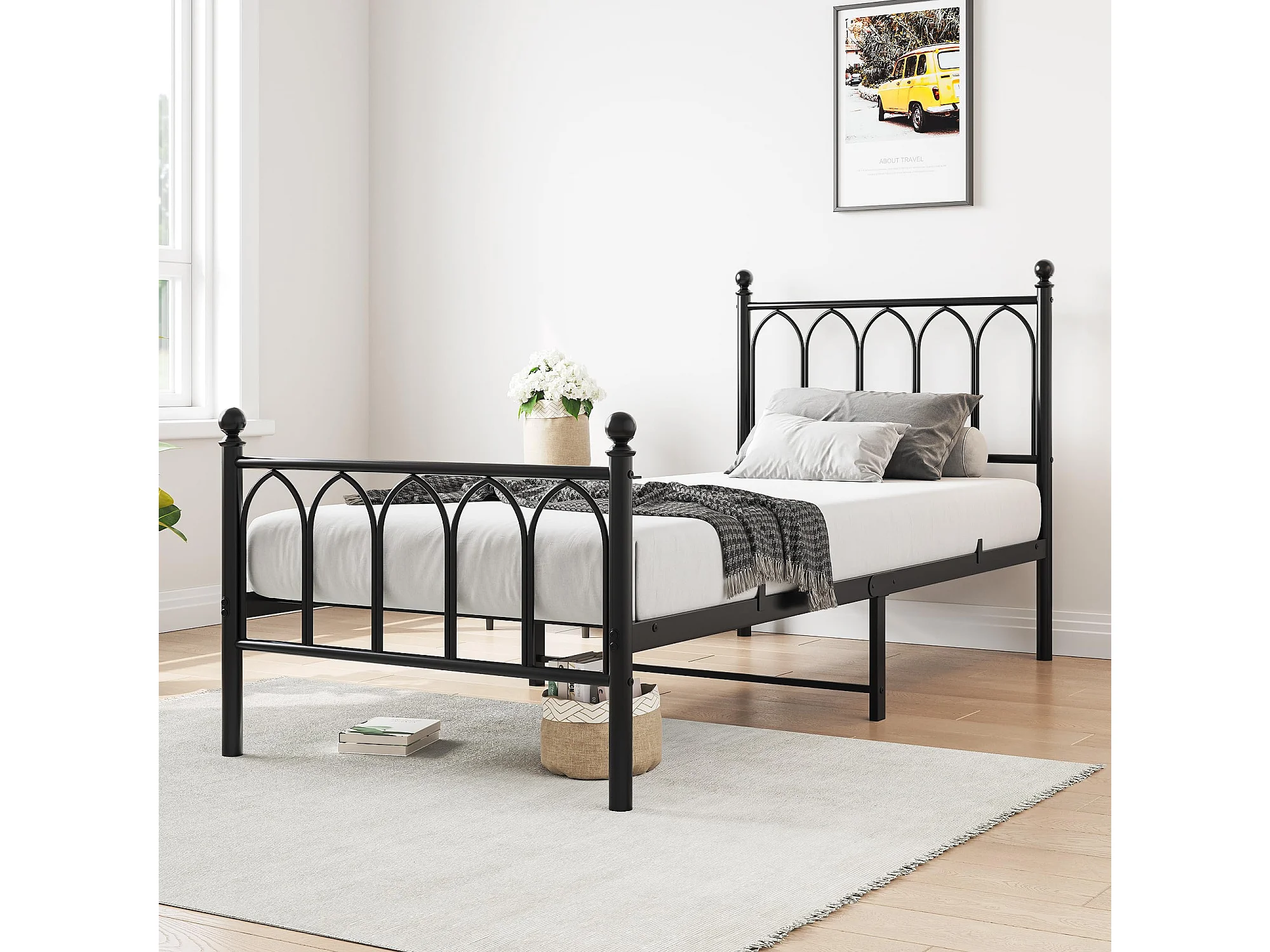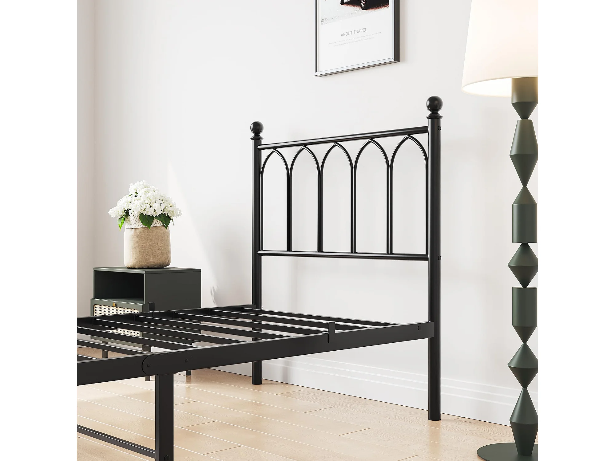 Cadre de lit en métal 90x200 cm - Lit simple avec tête de lit - Noir