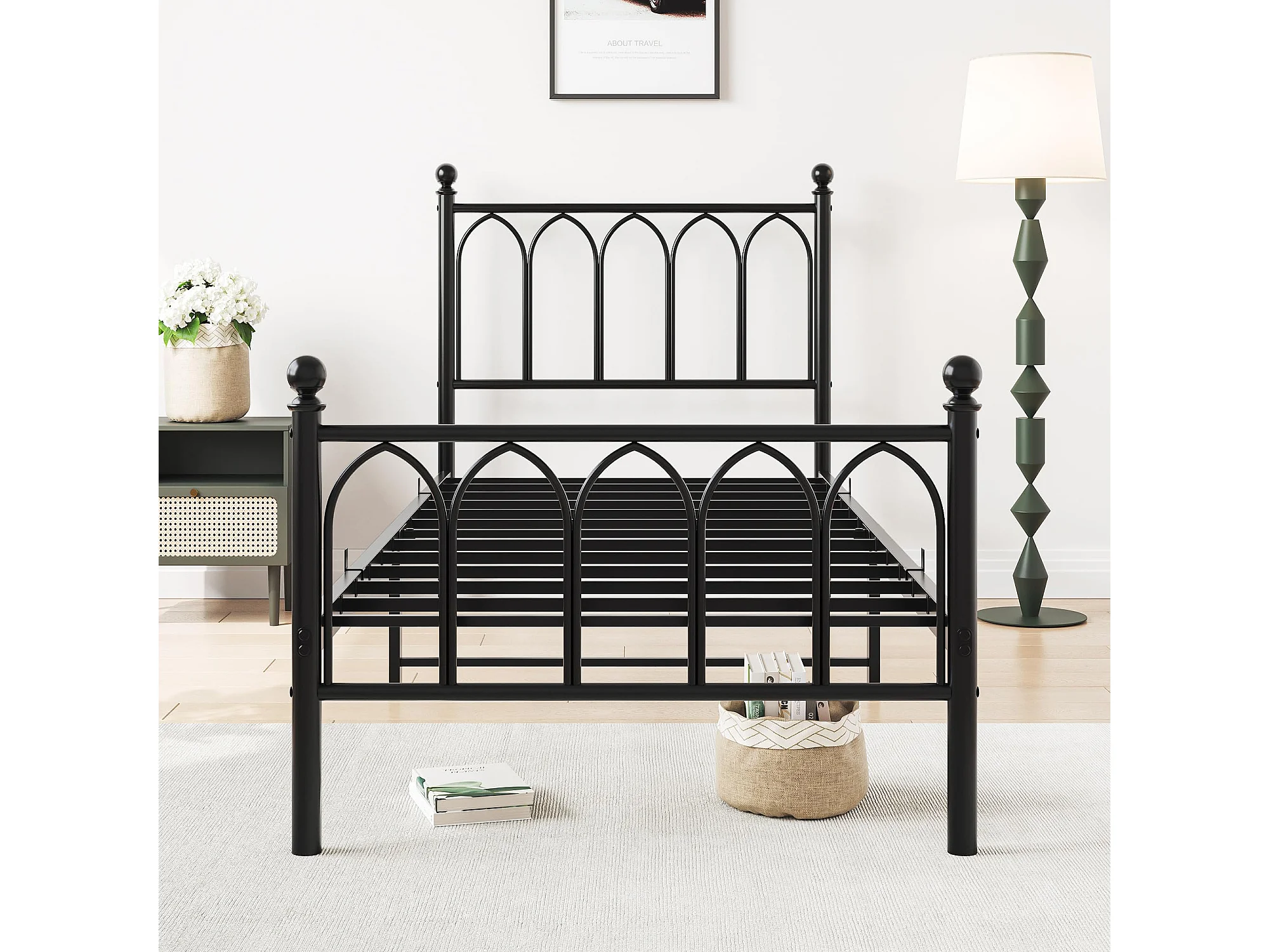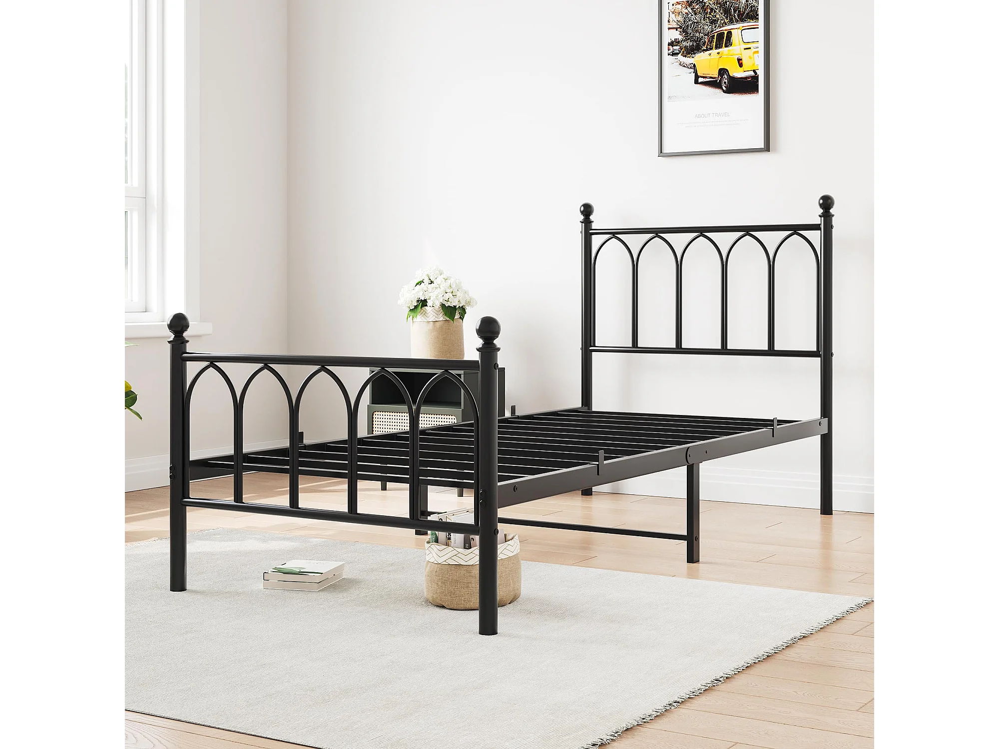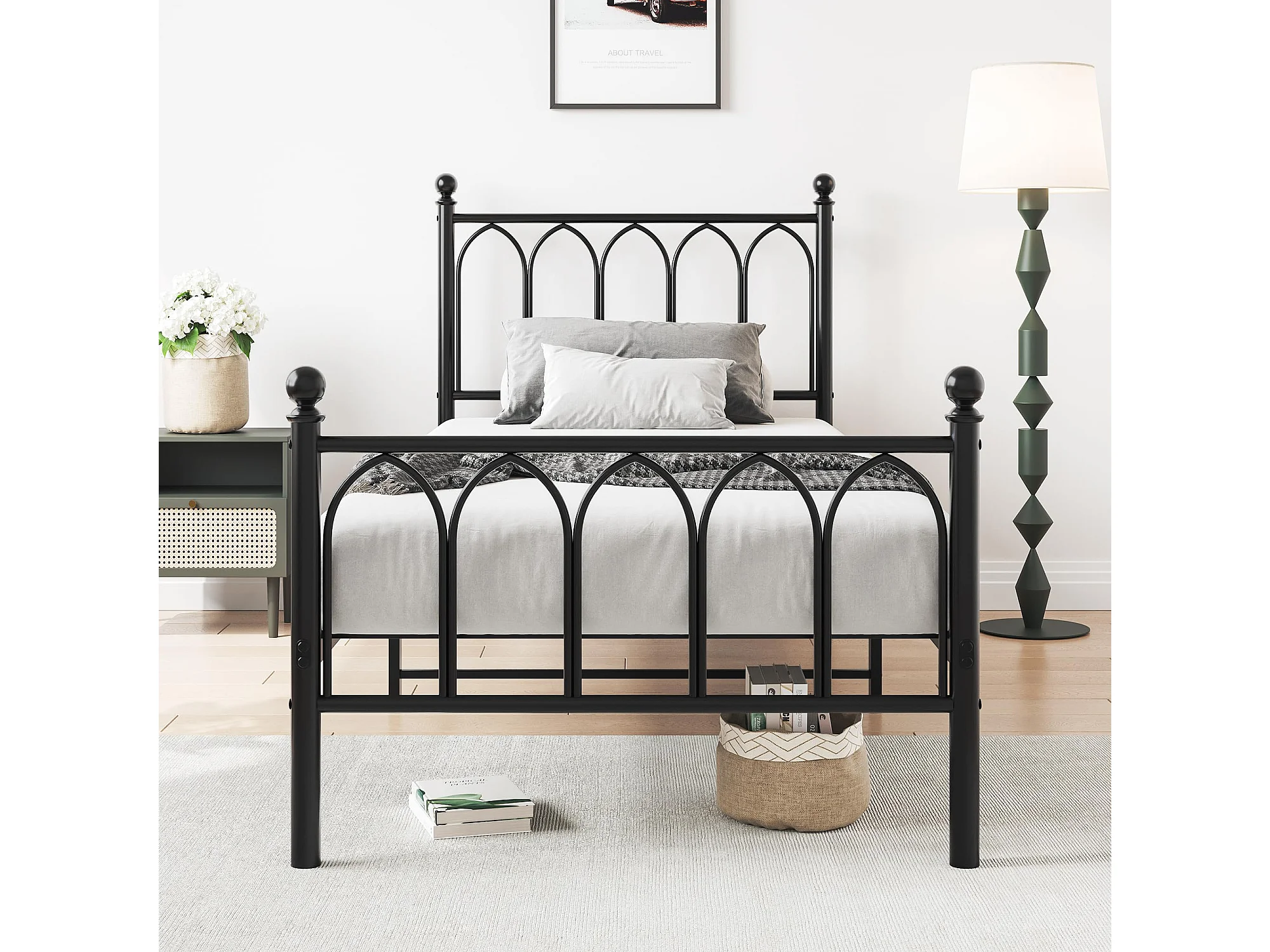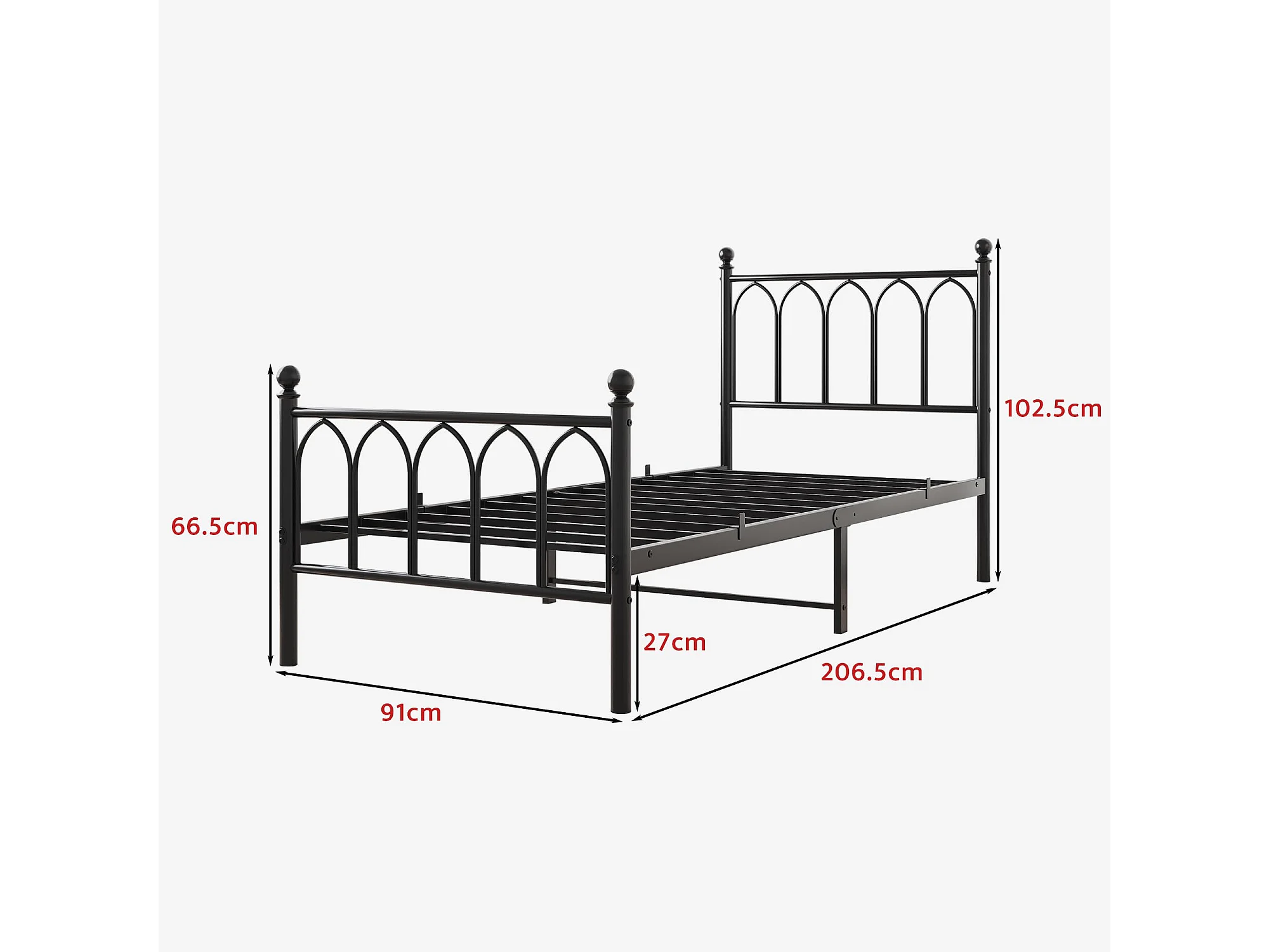 Cadre de lit en métal 90x200 cm - Lit simple avec tête de lit - Noir