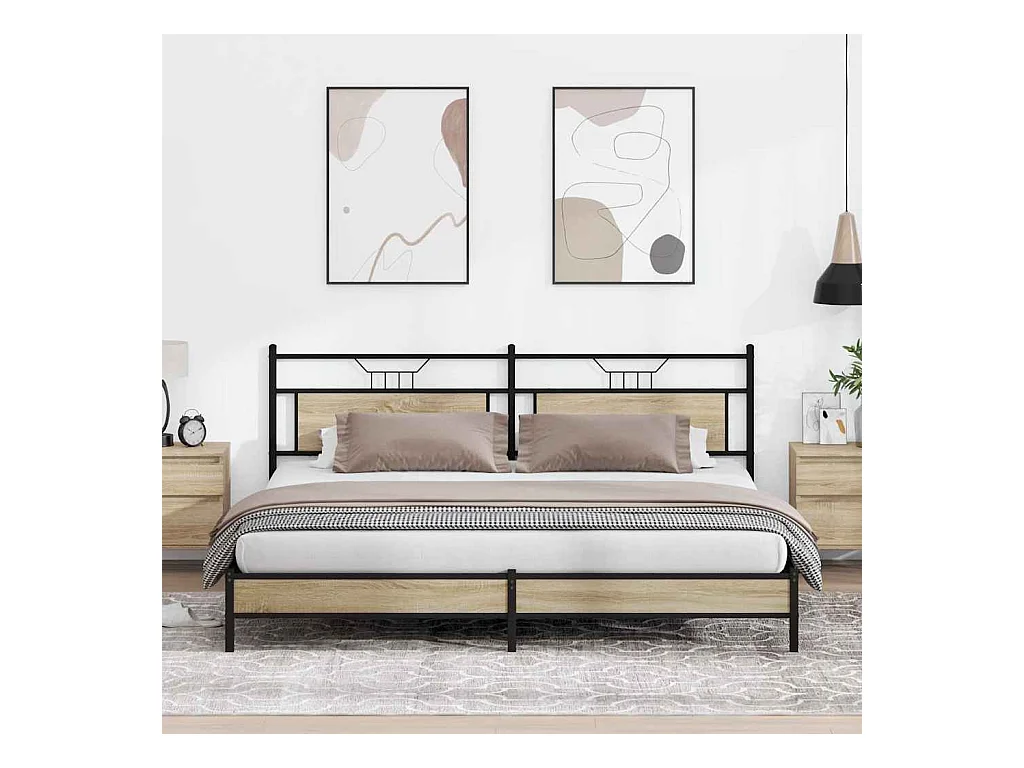 Cadre de lit en métal sans matelas chêne sonoma 200x200 cm