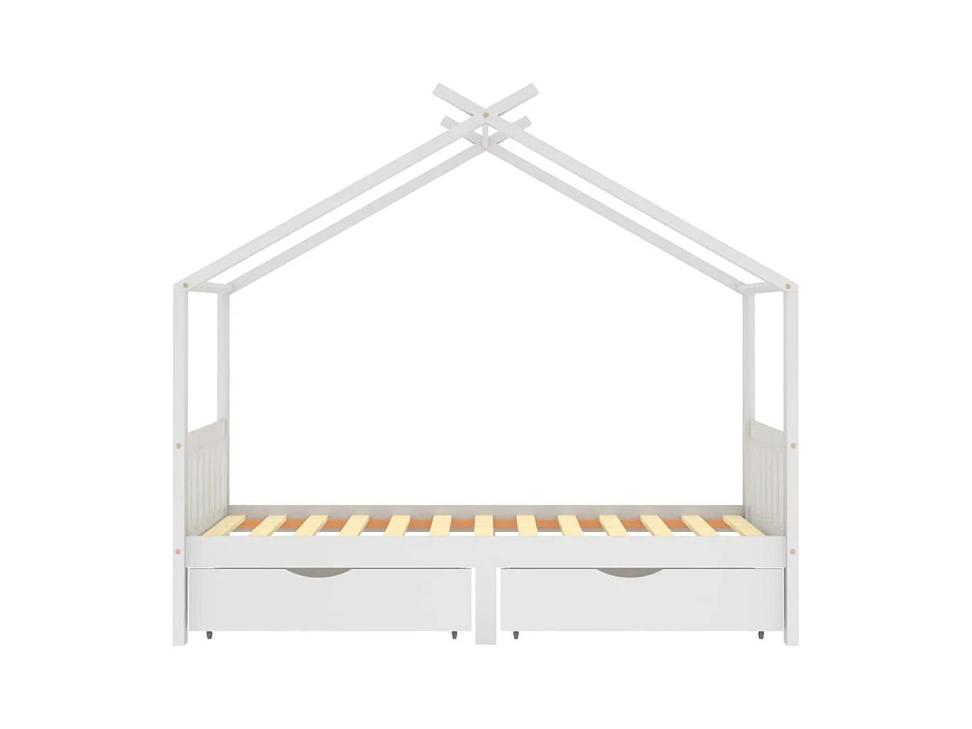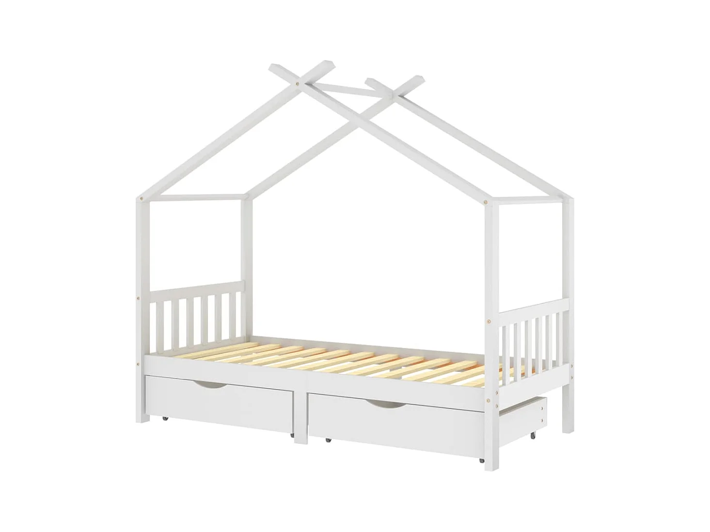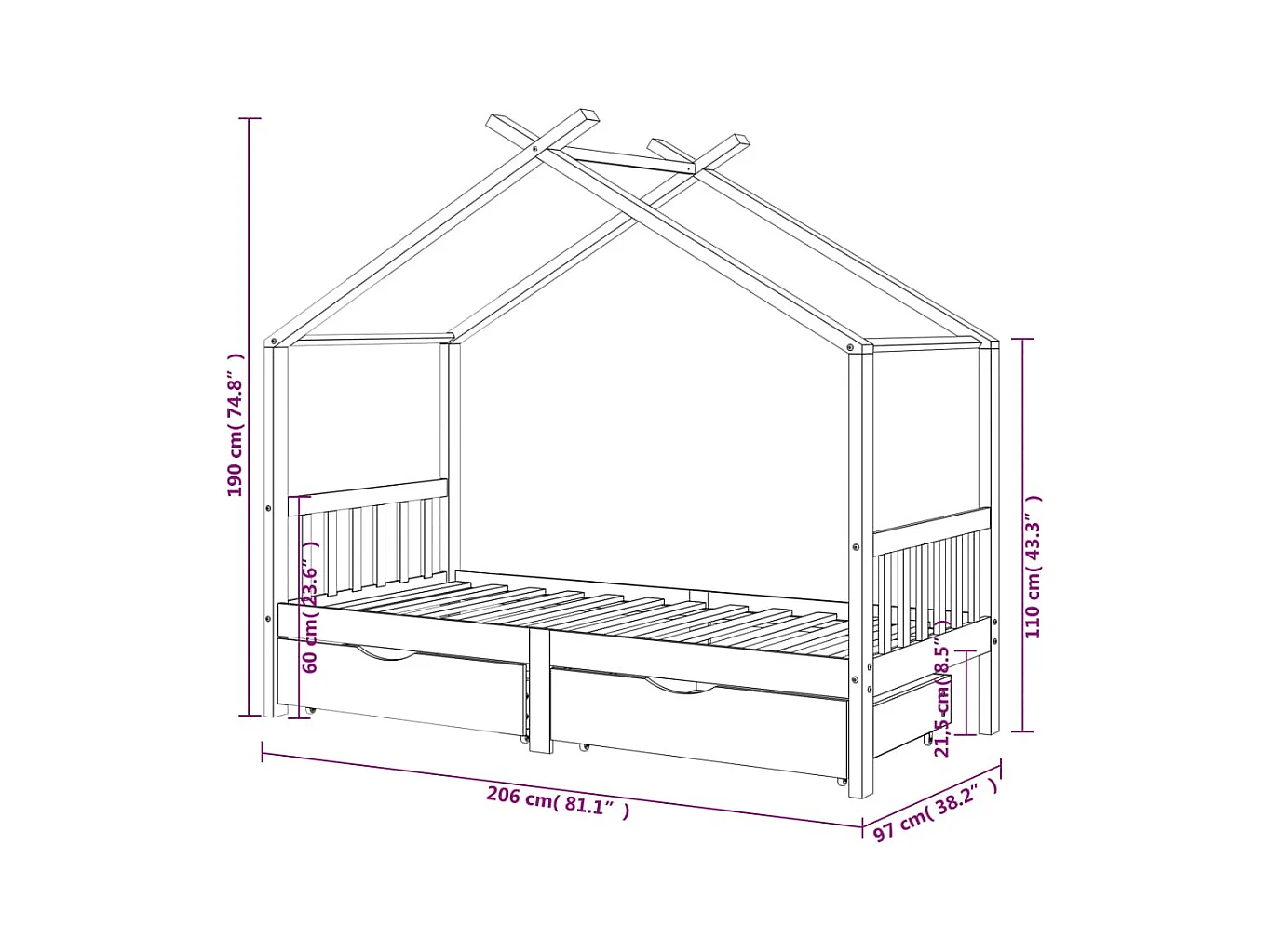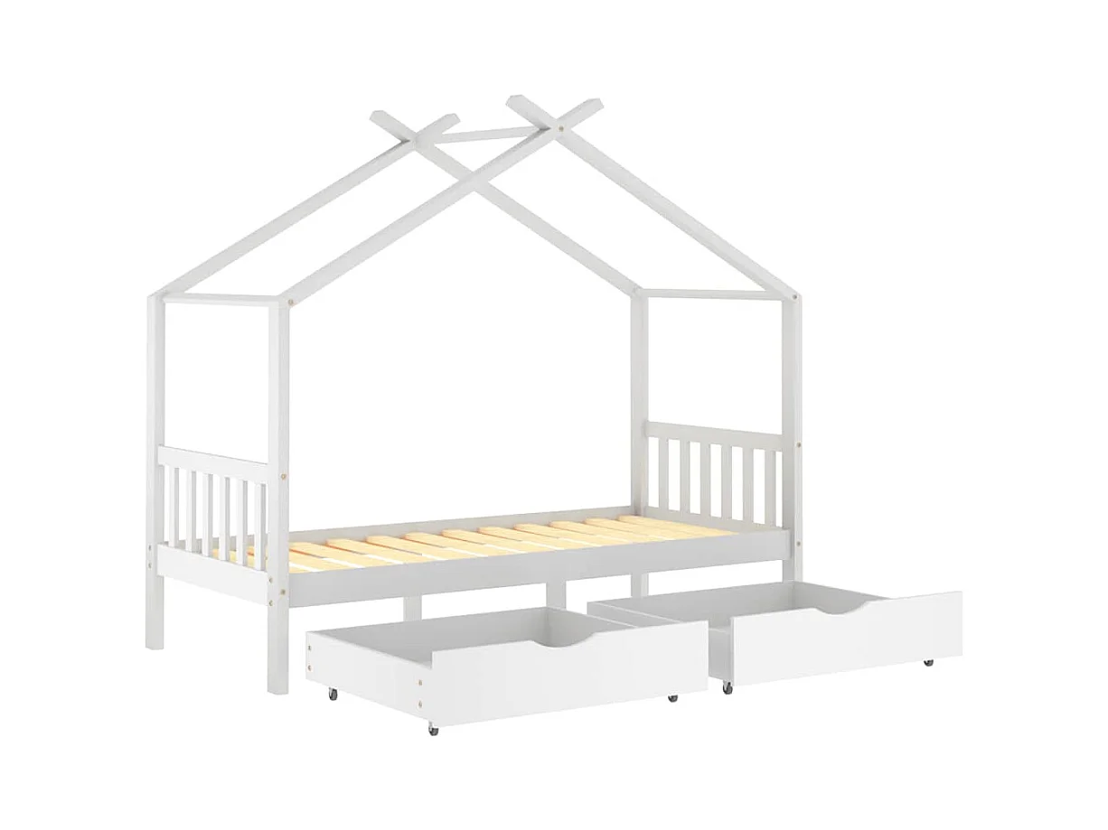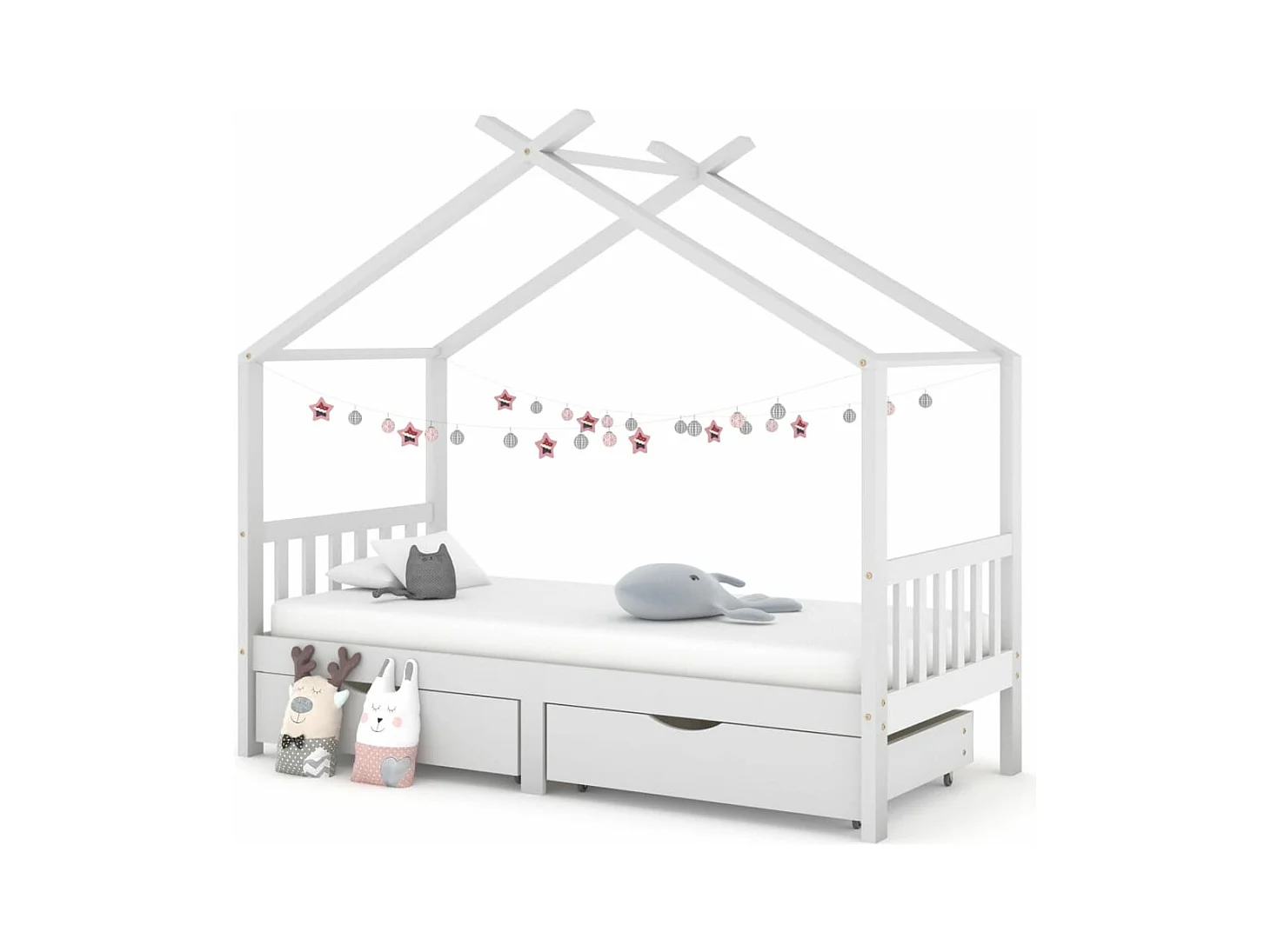 Cadre de lit enfant avec tiroirs blanc pin massif 90x200 cm