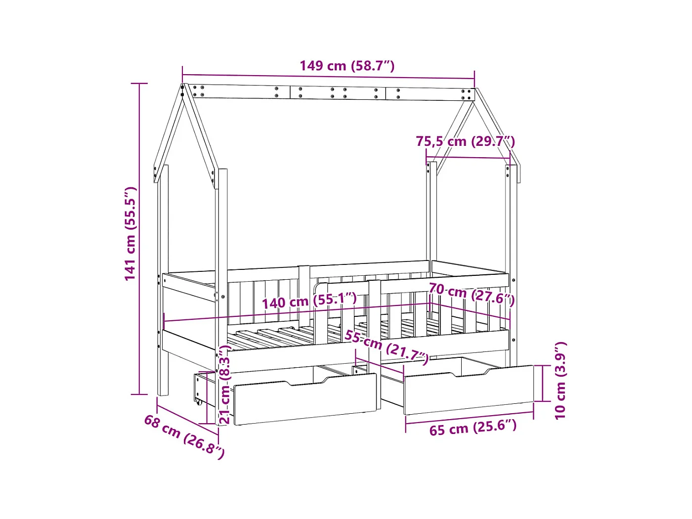 Cadre de lit enfant avec tiroirs sans matelas 70x140 cm bois