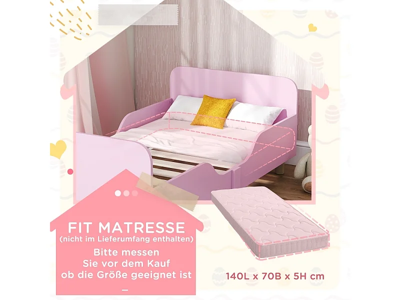 Cadre de lit enfant, lit simple avec barrière de sécurité, MDF rose – Lit enfant pratique pour chambre, sans matelas