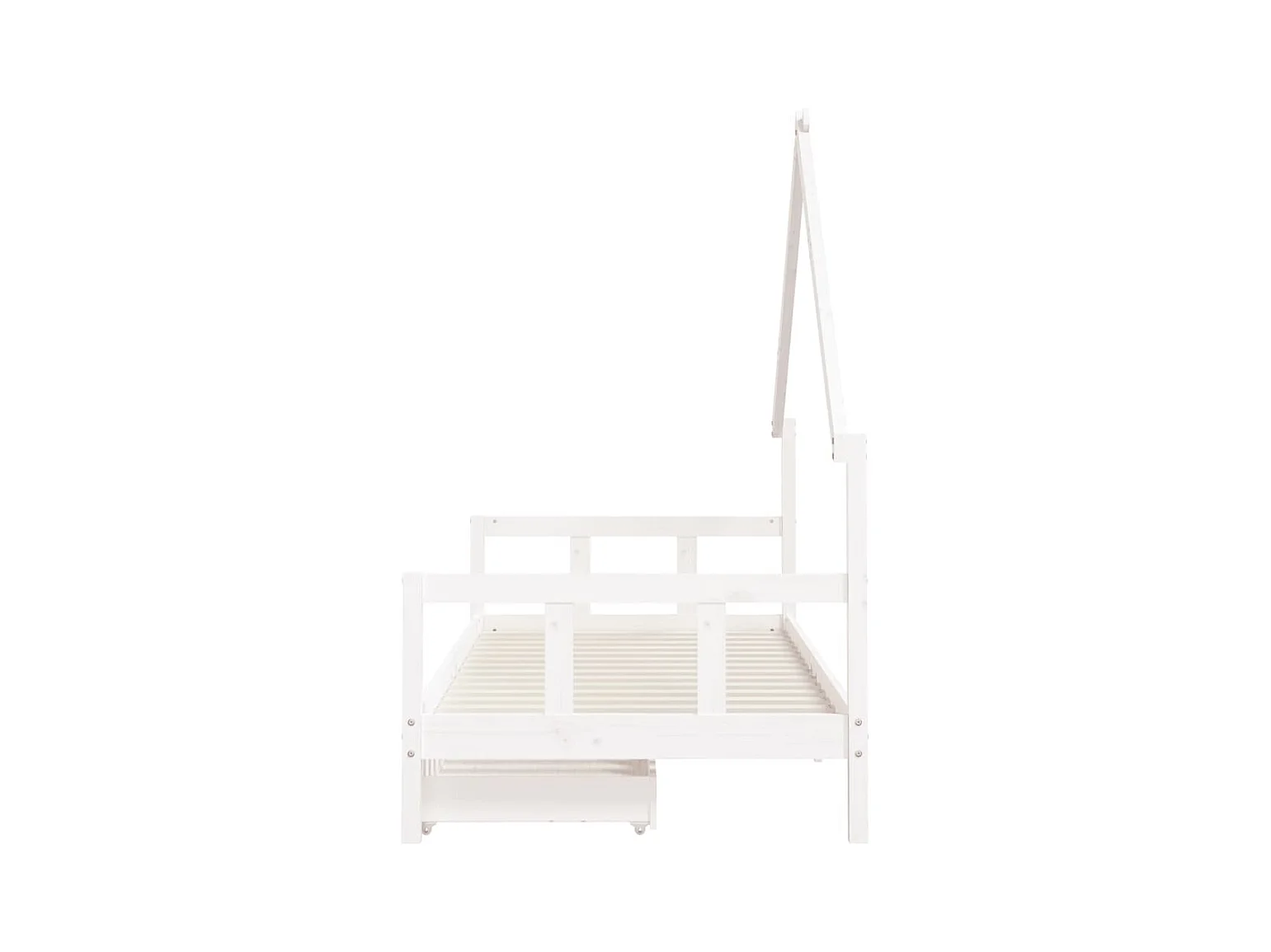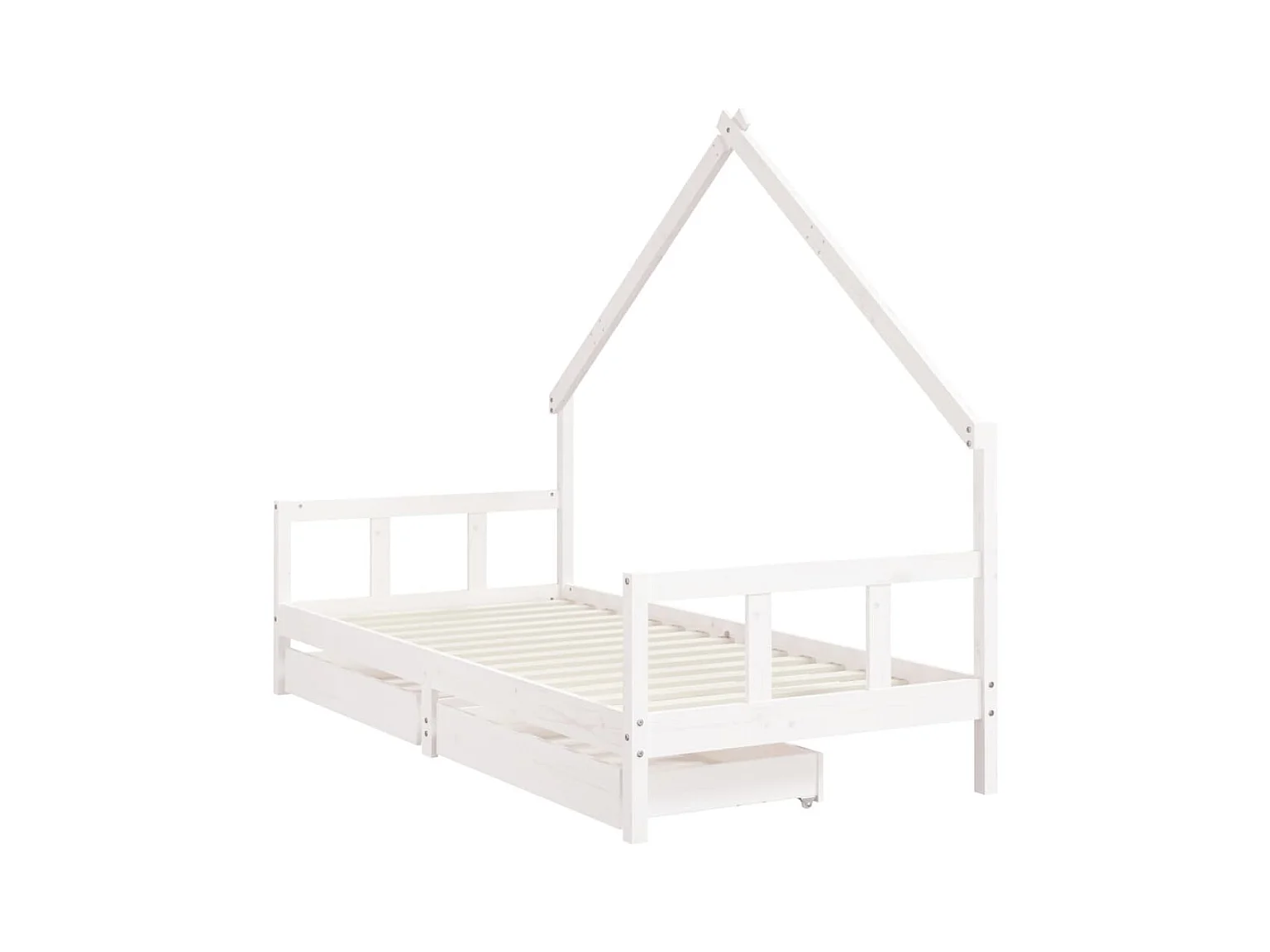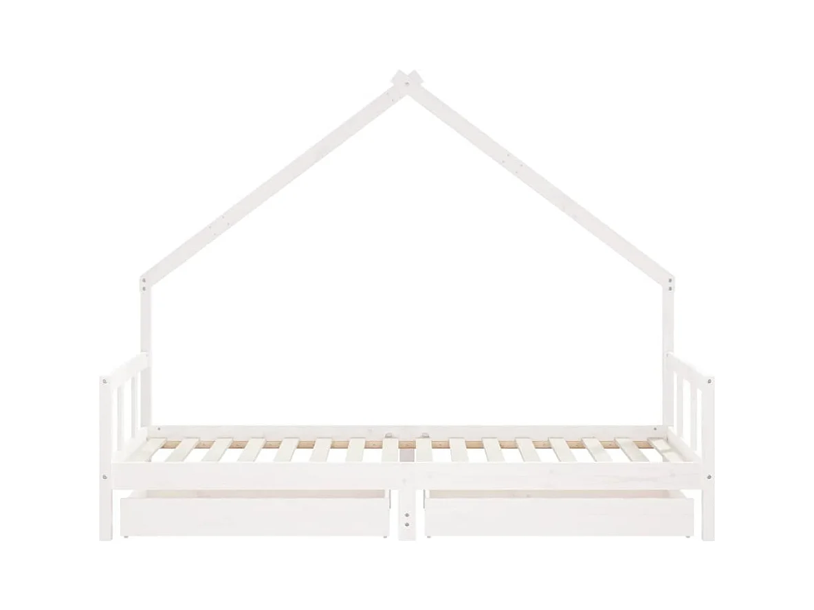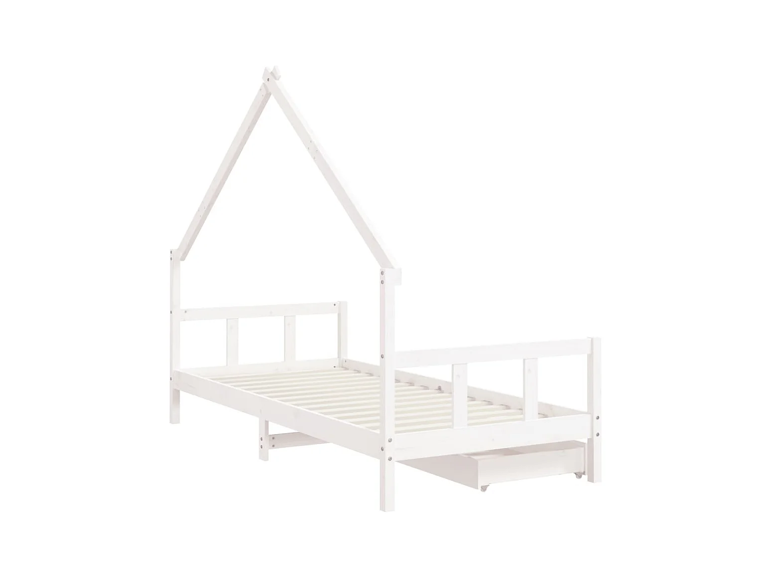Cadre de lit enfant tiroirs blanc 90x200 bois de pin massif
