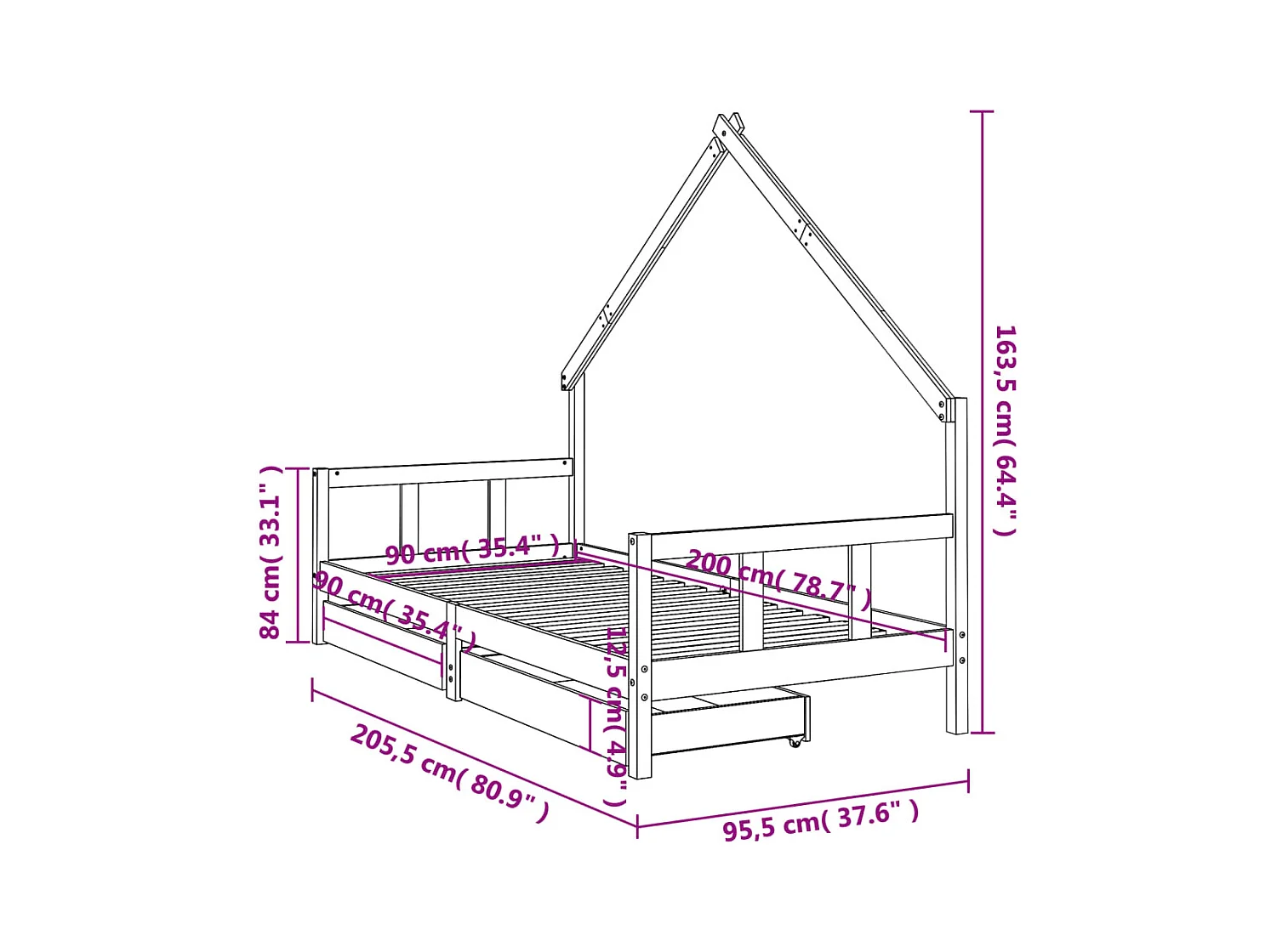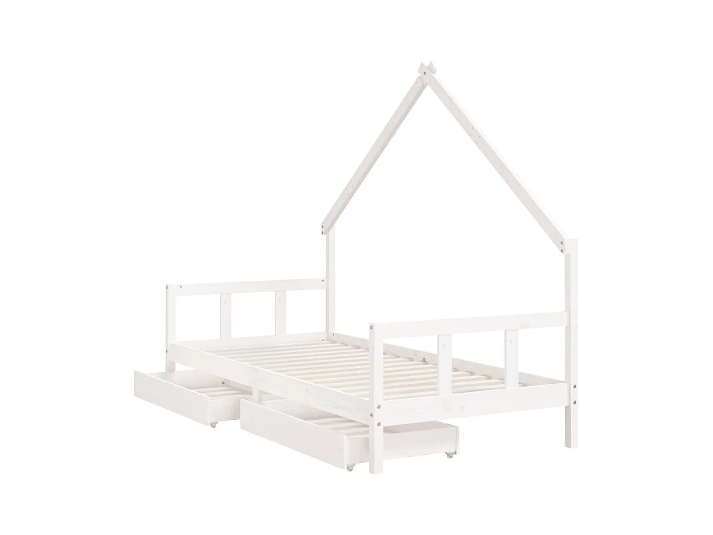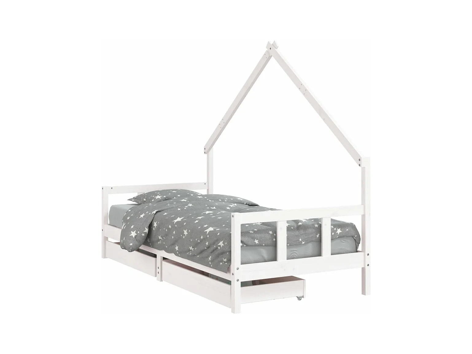 Cadre de lit enfant tiroirs blanc 90x200 bois de pin massif