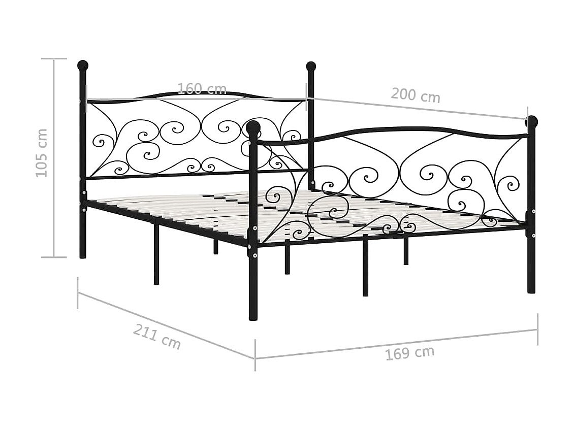 Cadre de lit et sommier à lattes Noir Métal 160 x 200 cm