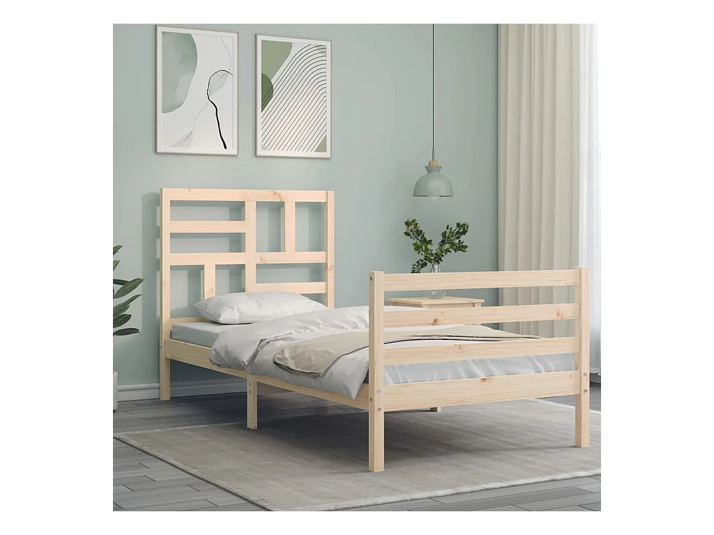 Cadre de lit et tête de lit 100x200 bois massif