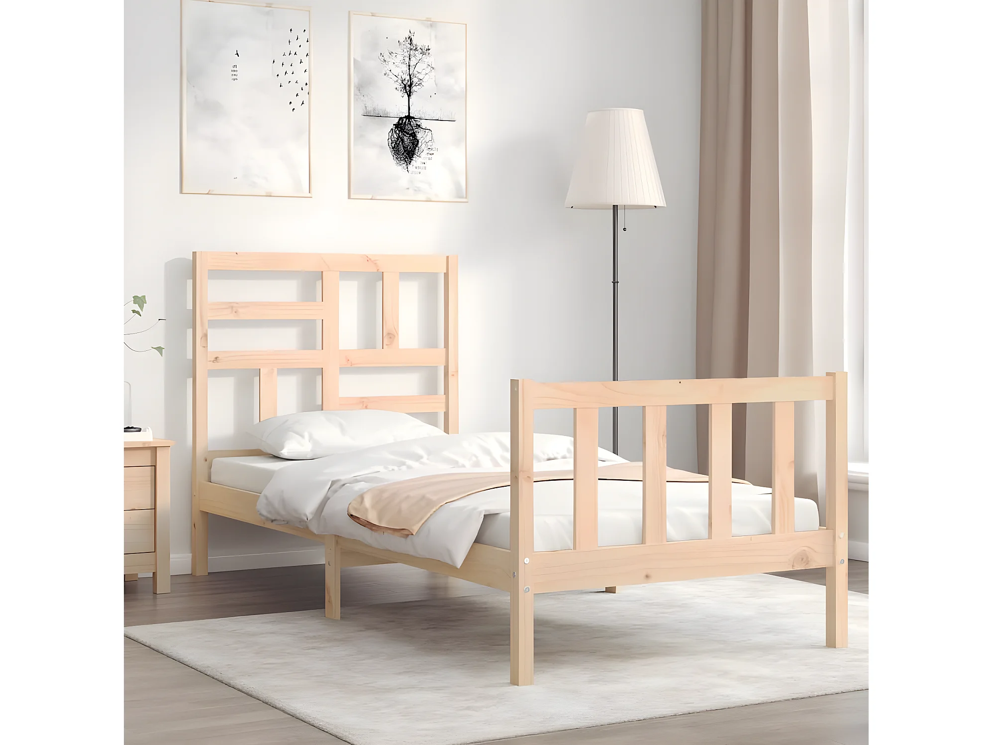Cadre de lit et tête de lit 100x200 bois massif