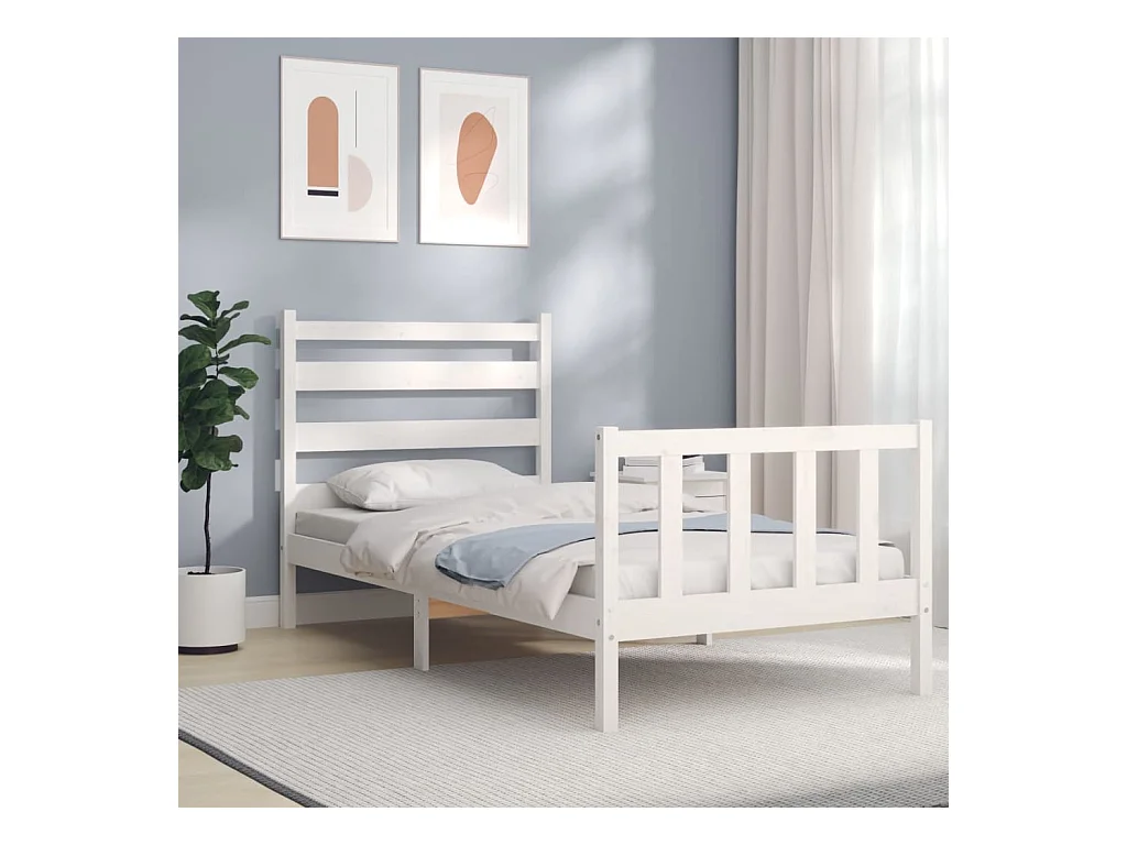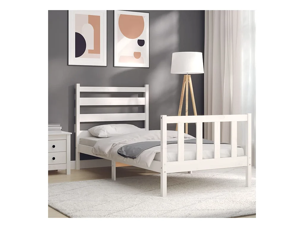 Cadre de lit et tête de lit blanc 100x200 bois massif