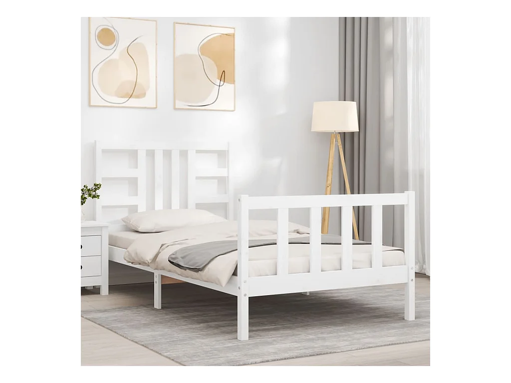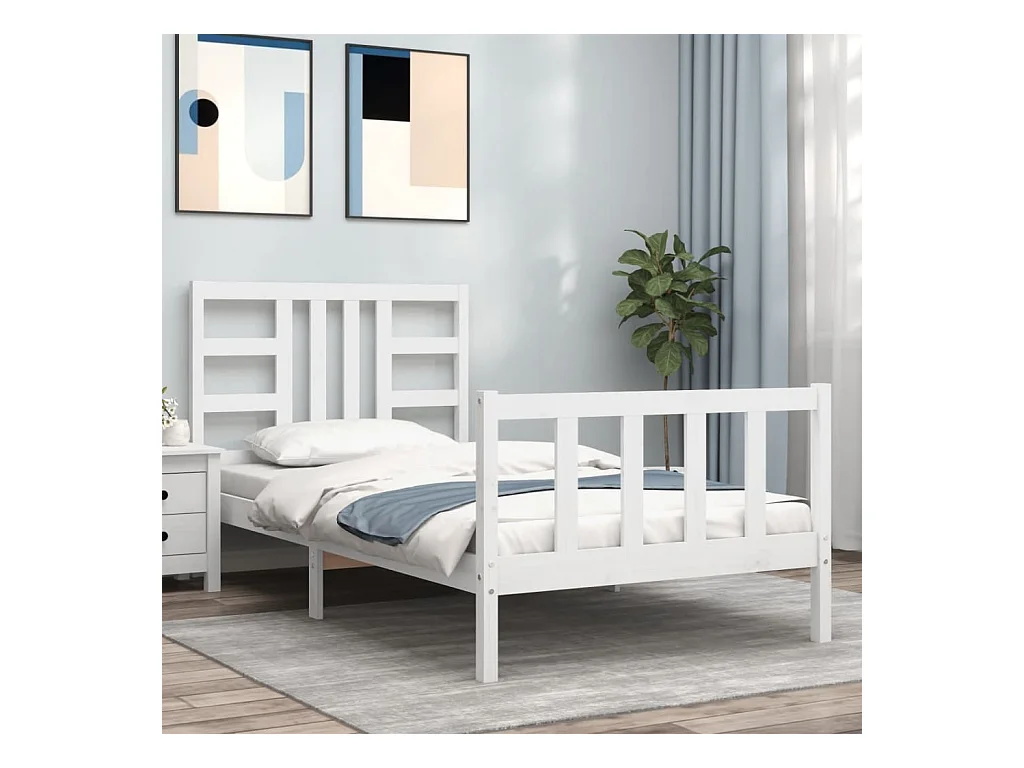 Cadre de lit et tête de lit blanc 100x200 bois massif