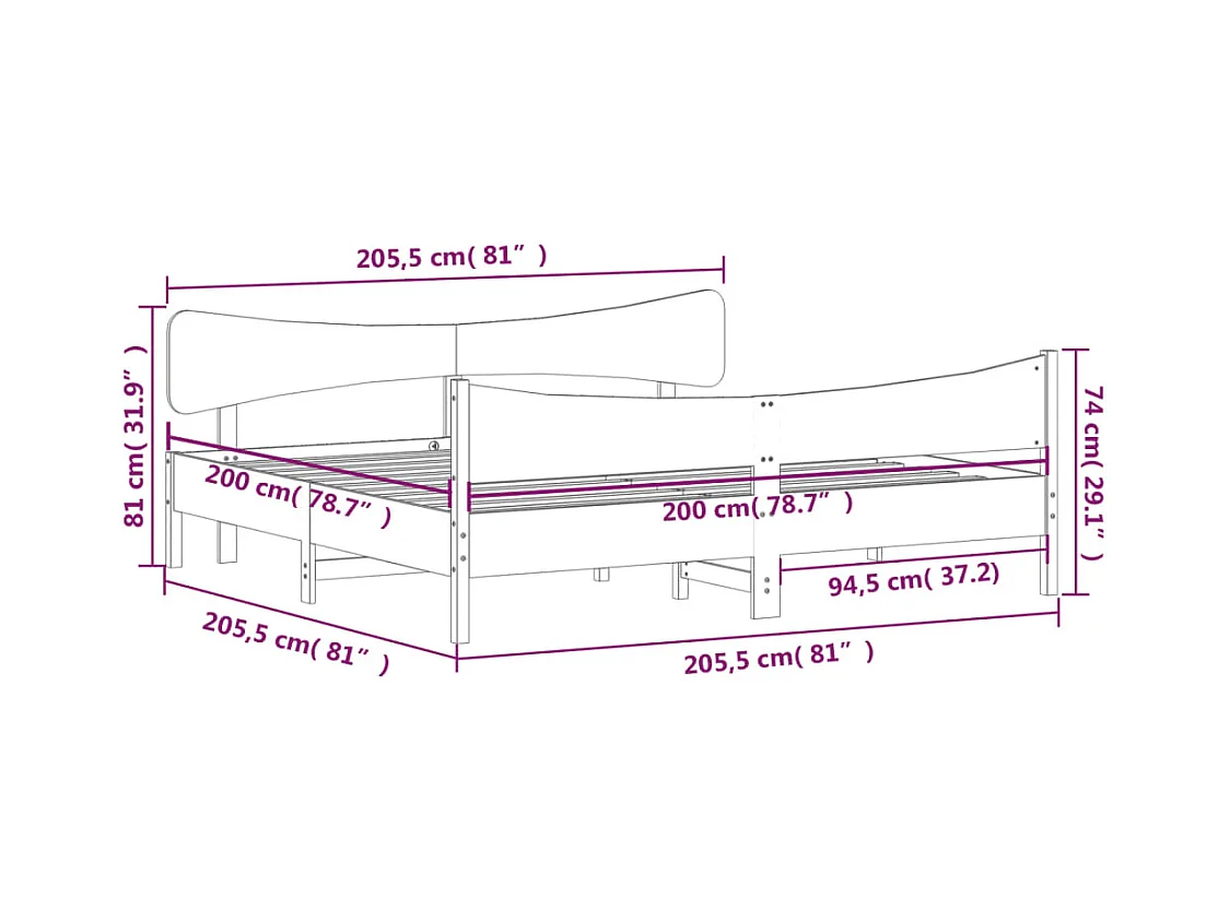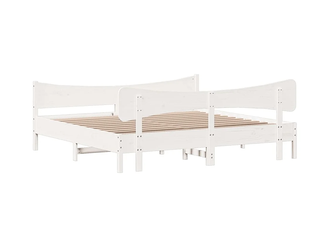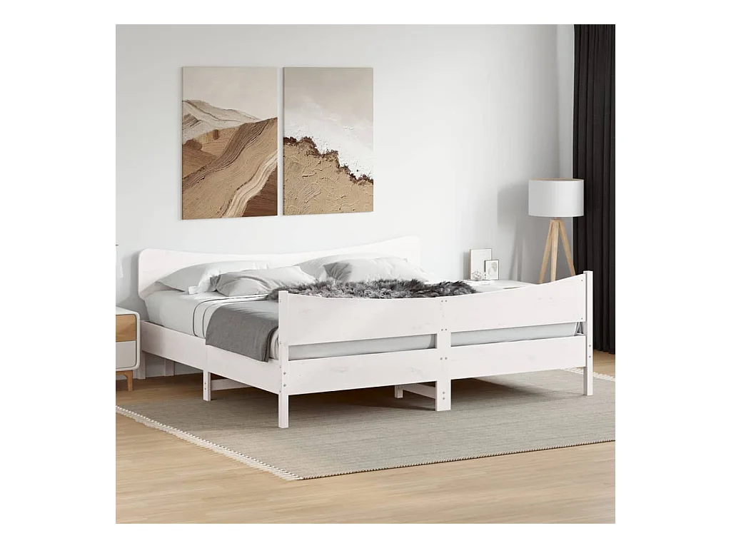 Cadre de lit et tête de lit blanc 200x200 bois de pin massif