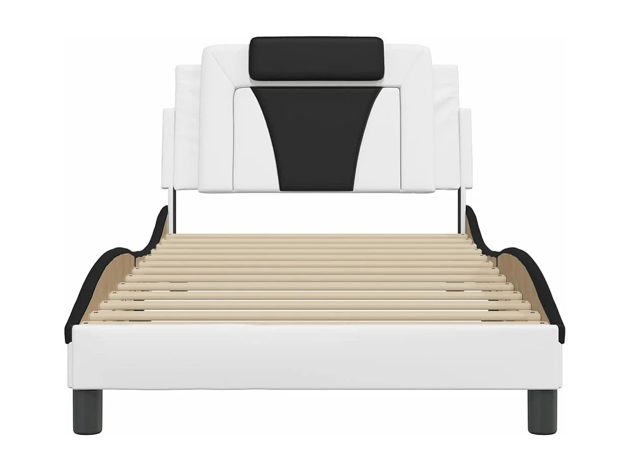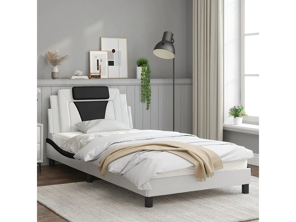 Cadre de lit et tête de lit blanc et noir 100x200 similicuir