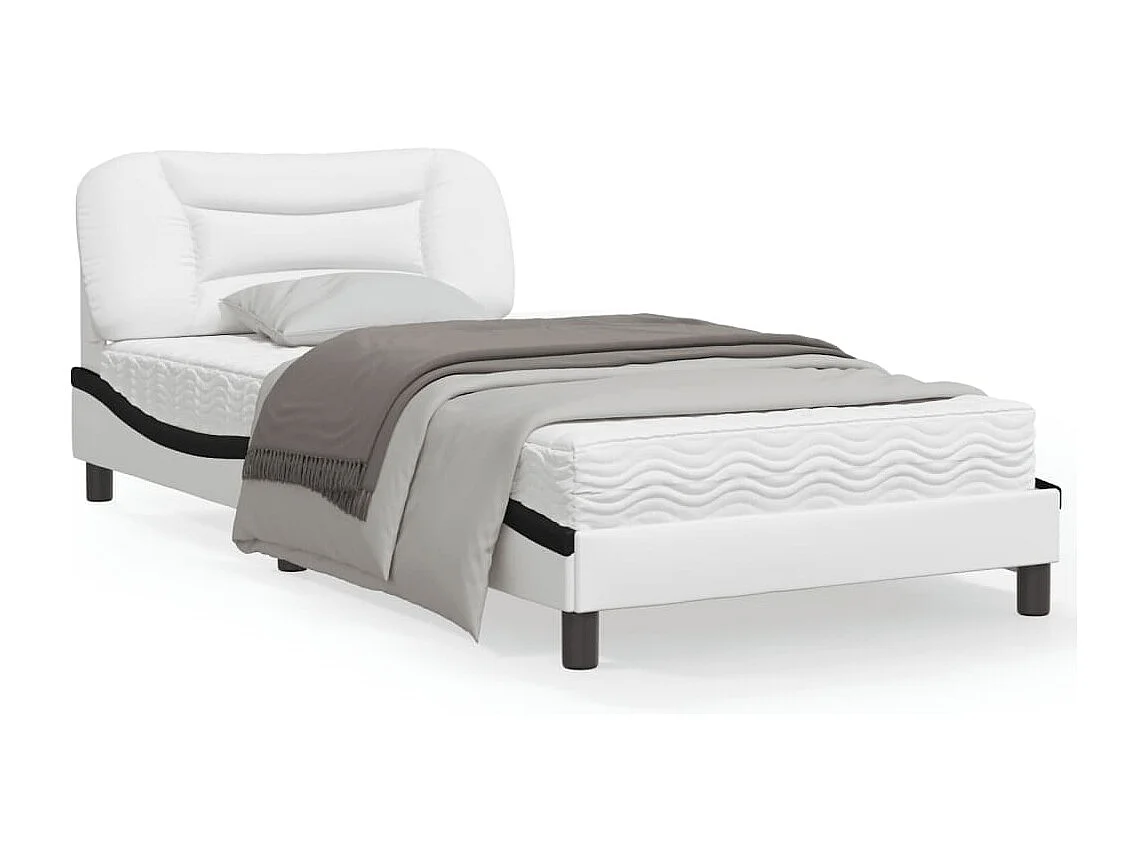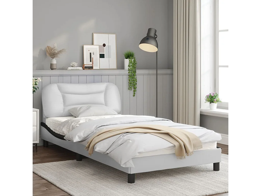 Cadre de lit et tête de lit blanc et noir 100x200 similicuir