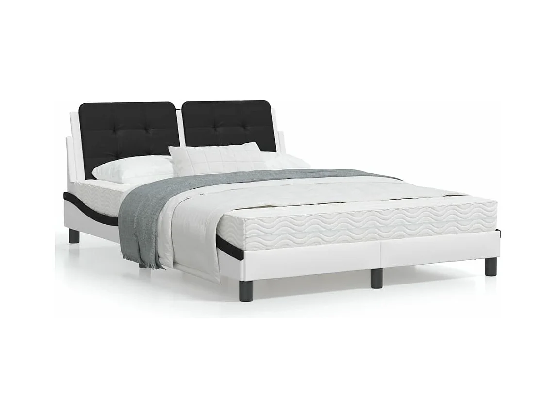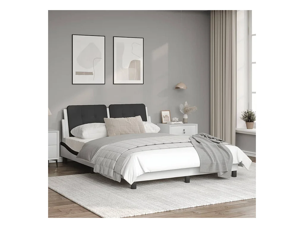 Cadre de lit et tête de lit blanc et noir 140x190 similicuir