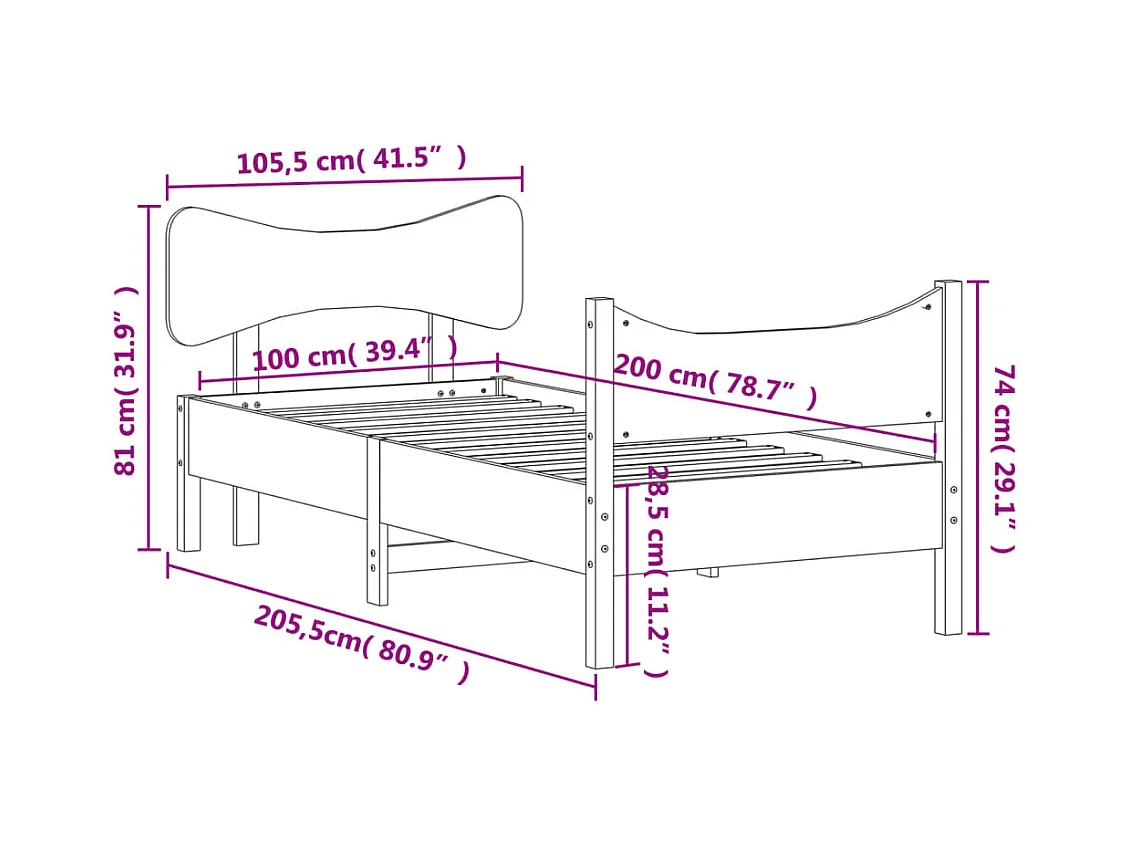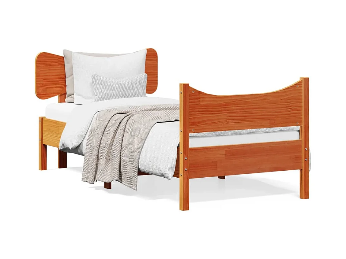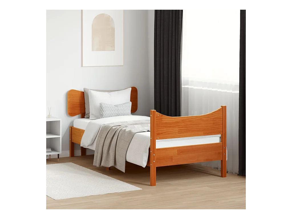 Cadre de lit et tête de lit marron 100x200 bois de pin