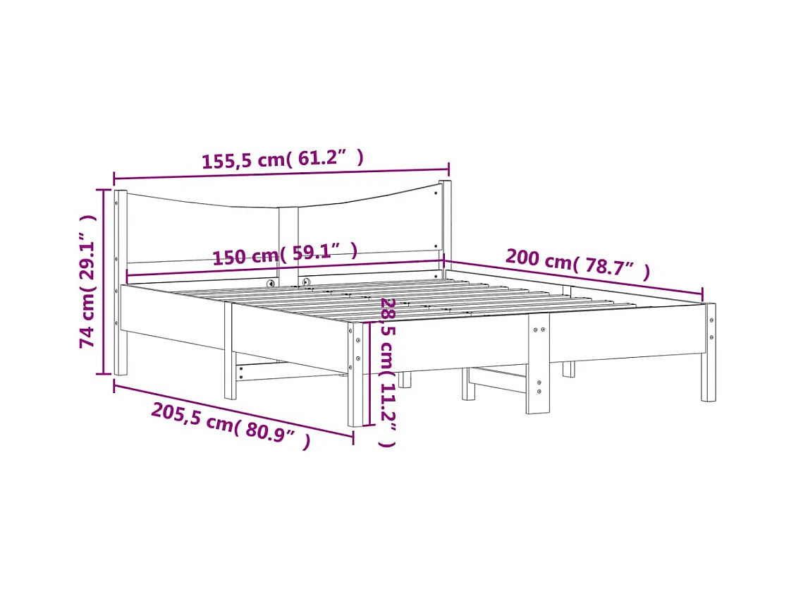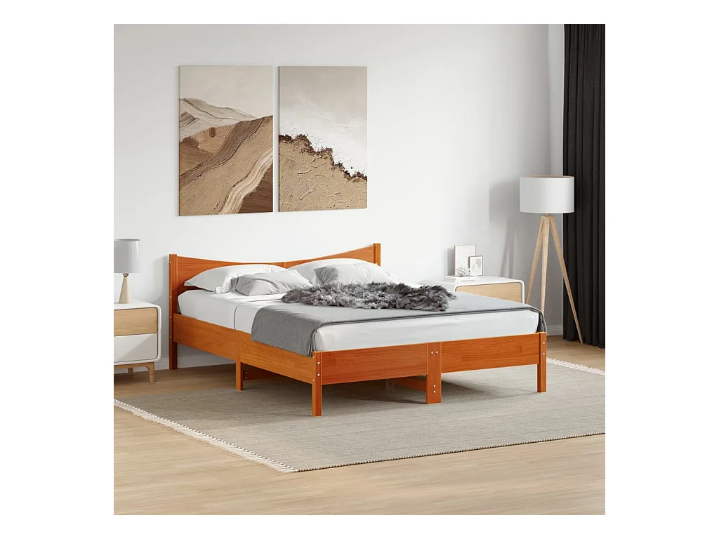 Cadre de lit et tête de lit marron 150x200 bois de pin