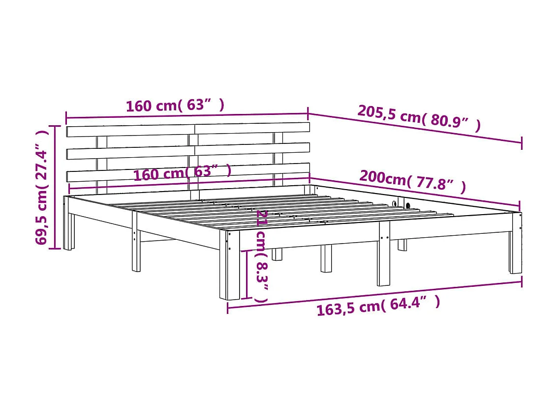 Cadre de lit et tête de lit marron 160x200 bois de pin