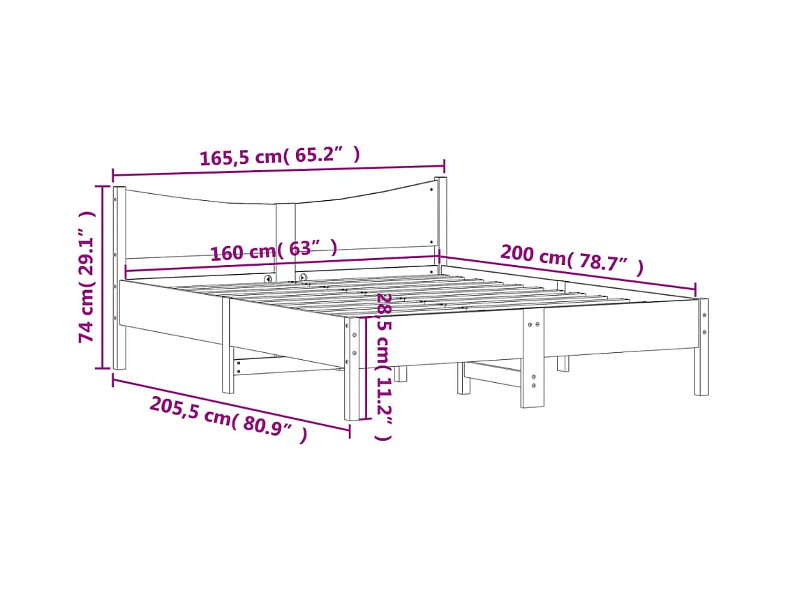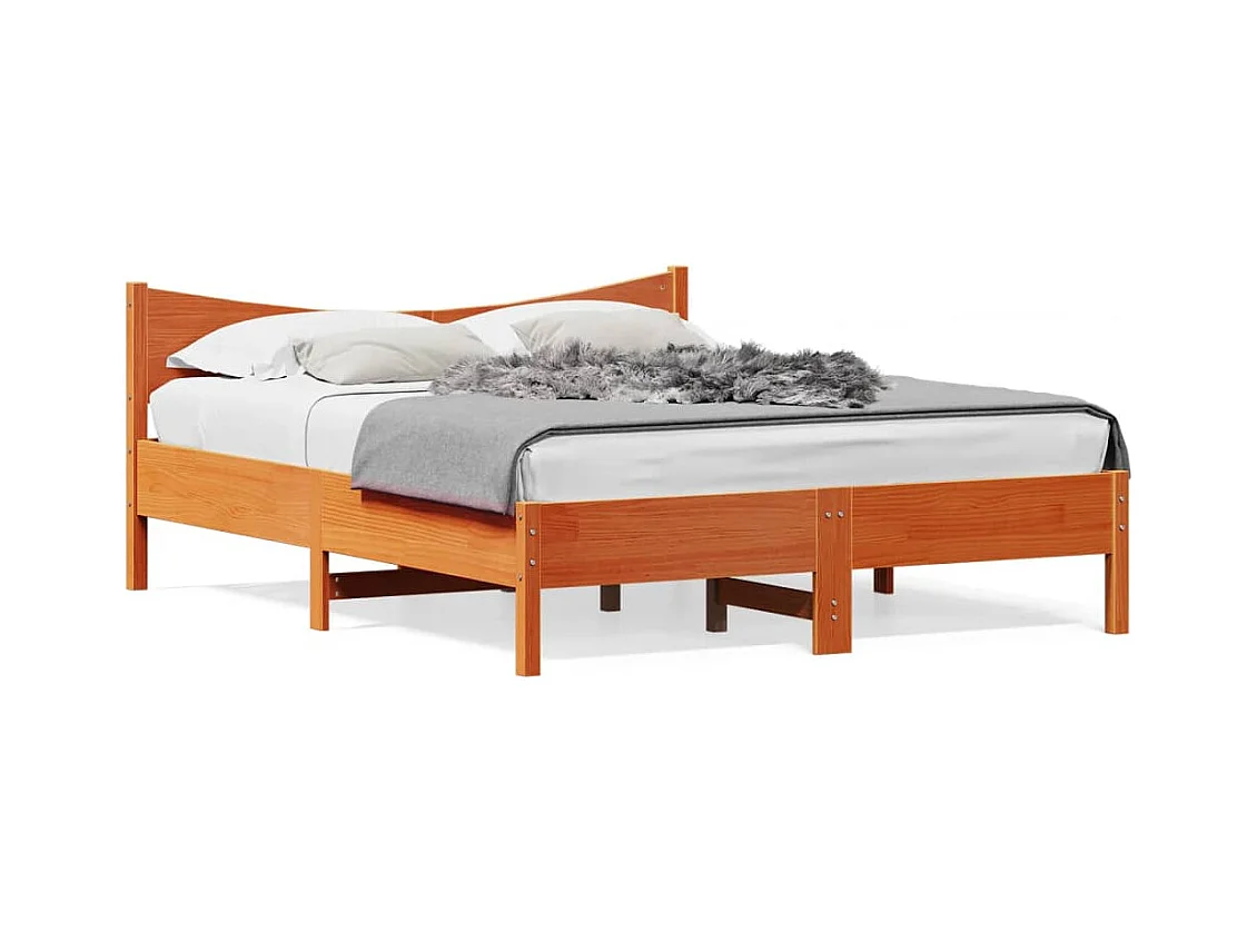 Cadre de lit et tête de lit marron 160x200 bois de pin