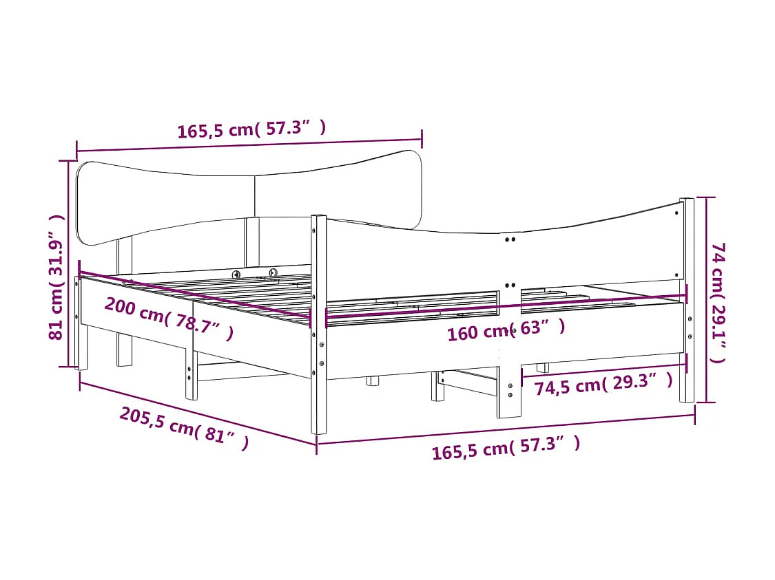 Cadre de lit et tête de lit marron 160x200 bois de pin
