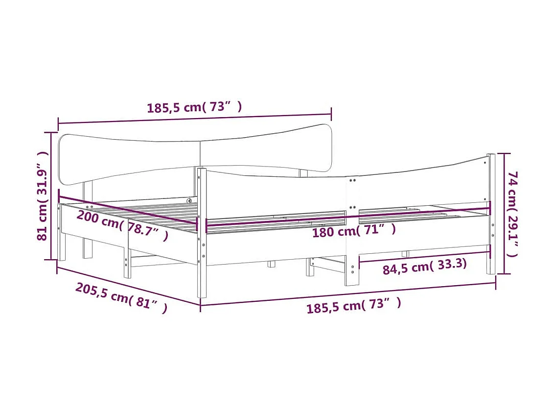 Cadre de lit et tête de lit marron 180x200 bois de pin