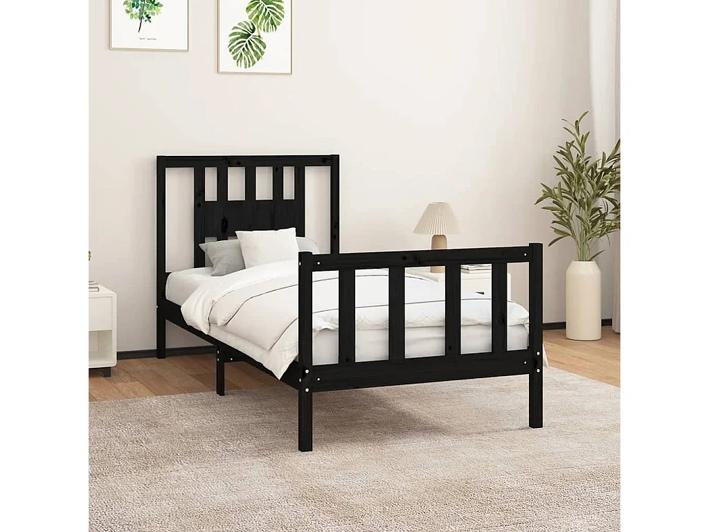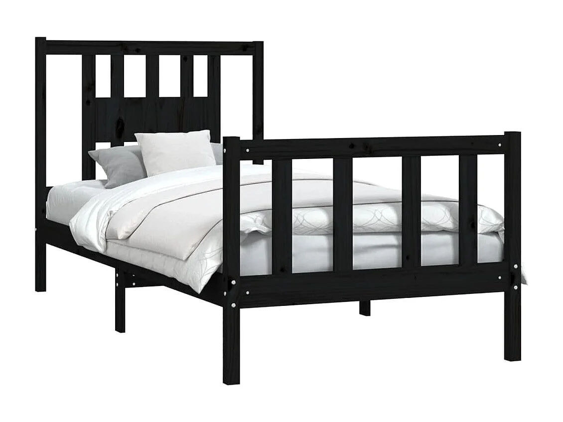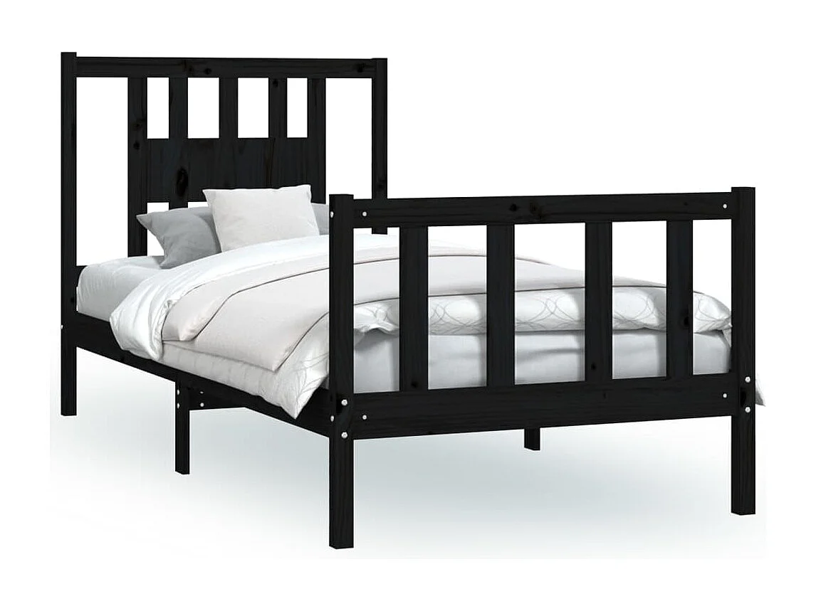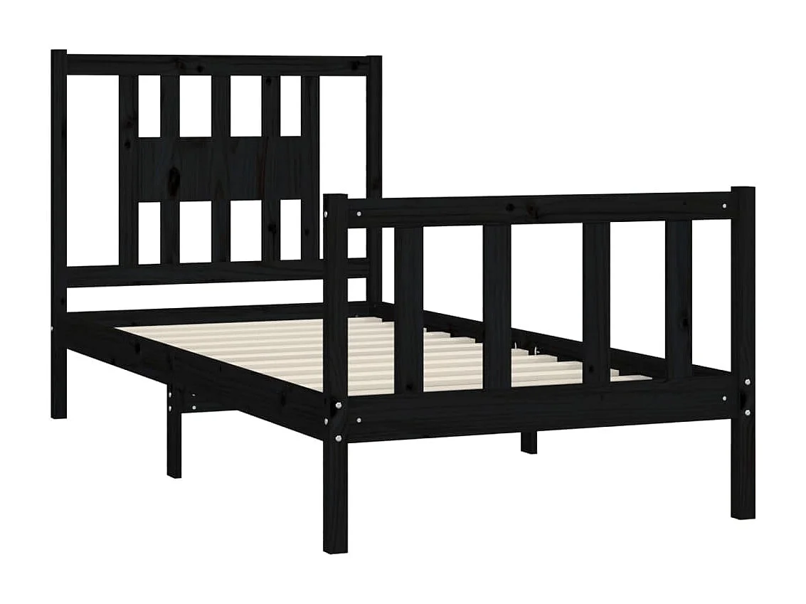 Cadre de lit et tête de lit noir bois de pin massif 100x200