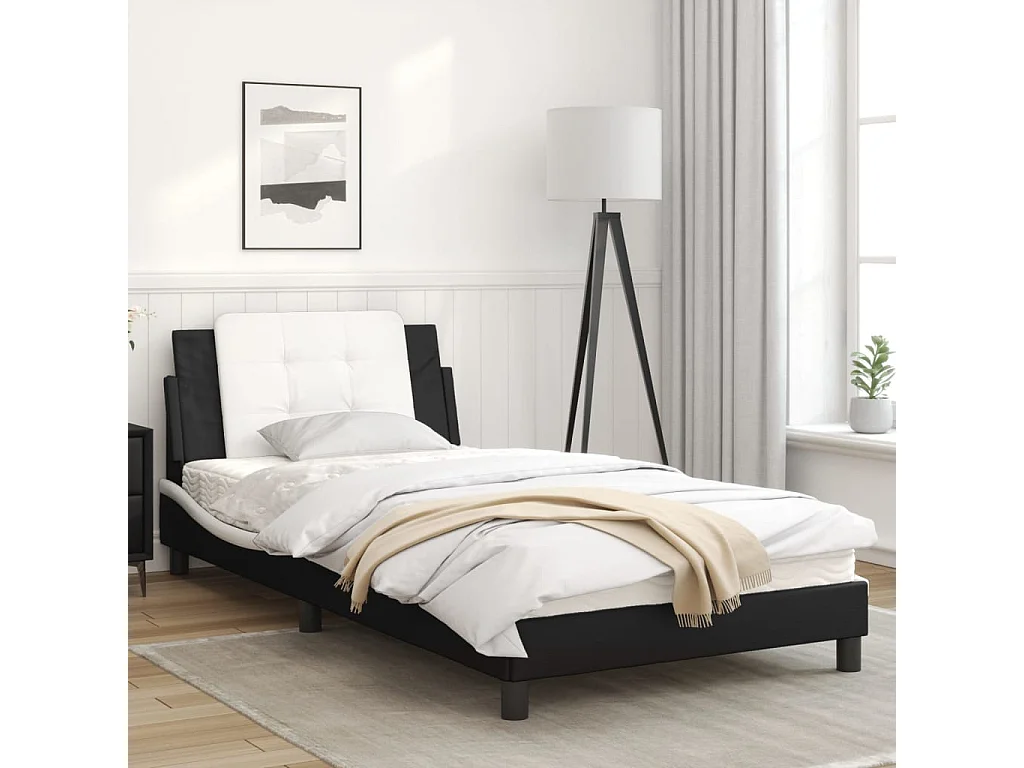 Cadre de lit et tête de lit noir et blanc 100x200 similicuir