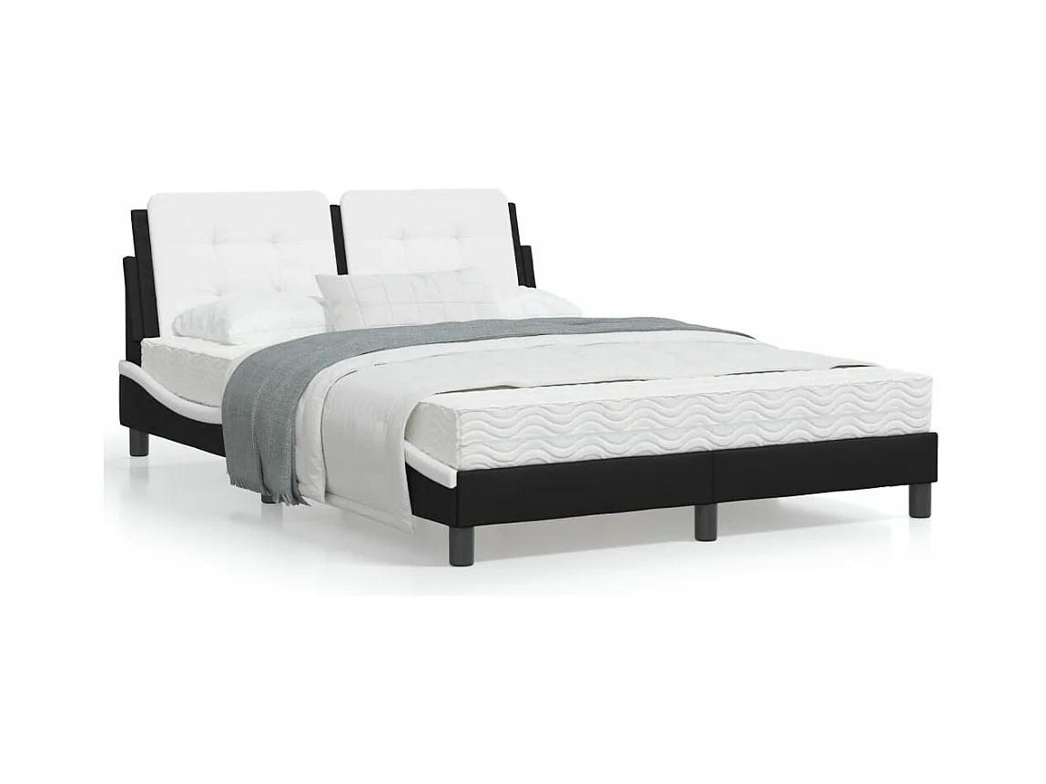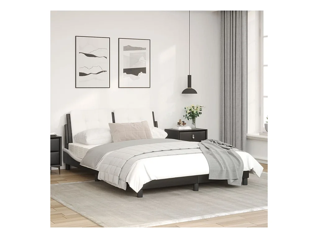 Cadre de lit et tête de lit noir et blanc 140x190 similicuir