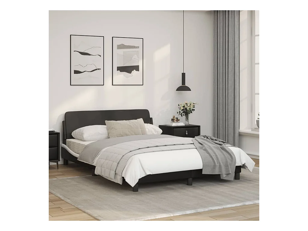 Cadre de lit et tête de lit noir et blanc 140x200 similicuir