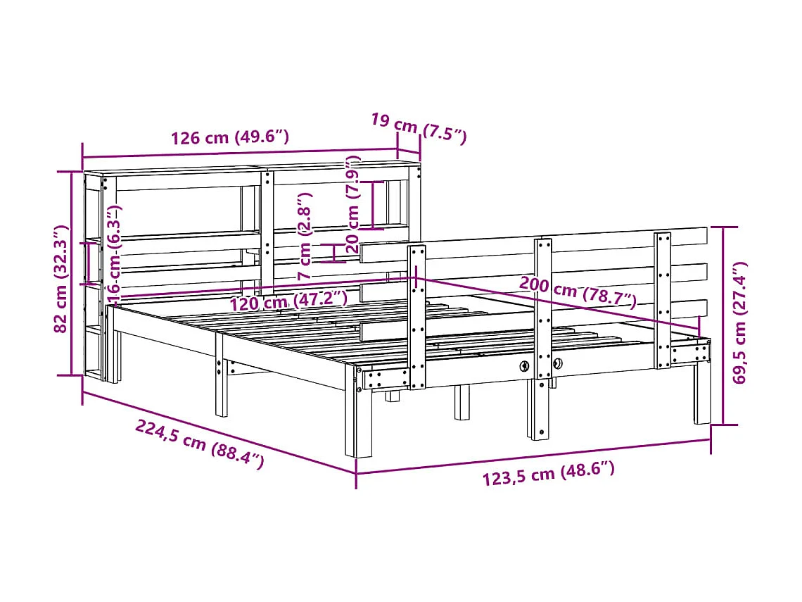 Cadre de lit et tête de lit sans matelas cire marron 120x200 cm