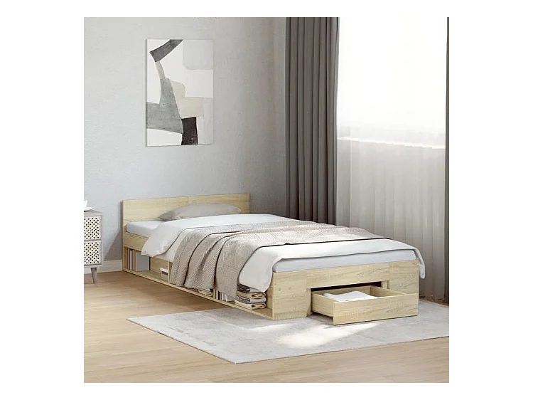 Cadre de lit et tiroir chêne sonoma 90x190 bois d'ingénierie