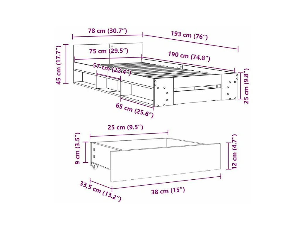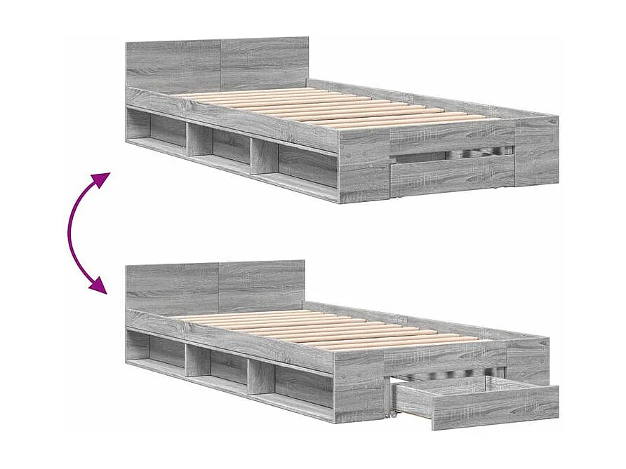 Cadre de lit et tiroir sonoma gris 75x190 bois d'ingénierie