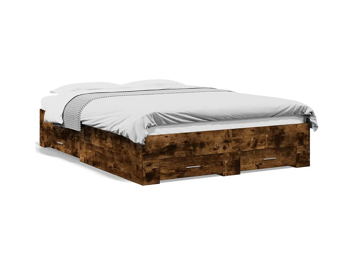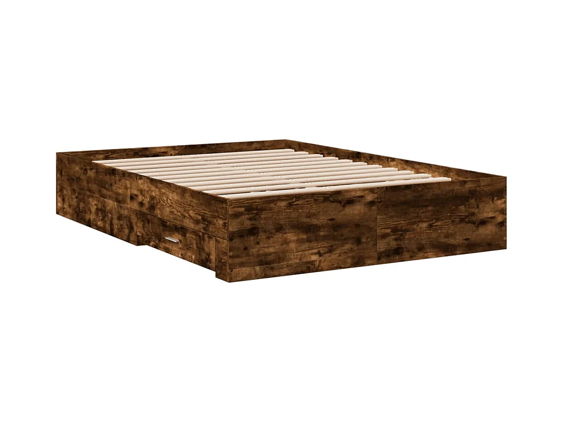 Cadre de lit et tiroirs chêne fumé 120x190 bois d'ingénierie