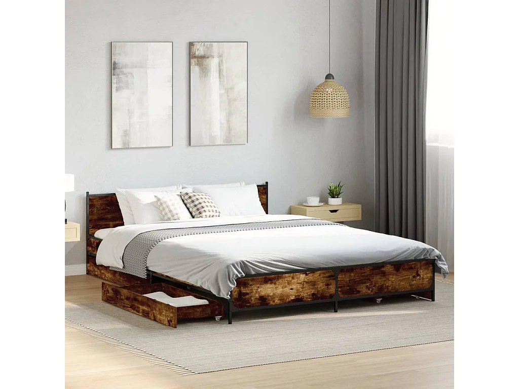 Cadre de lit et tiroirs chêne fumé 120x200 cm bois d'ingénierie