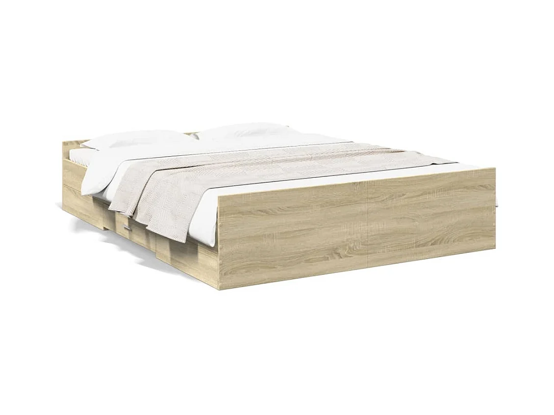Cadre de lit et tiroirs chêne sonoma 140x200 bois ingénierie