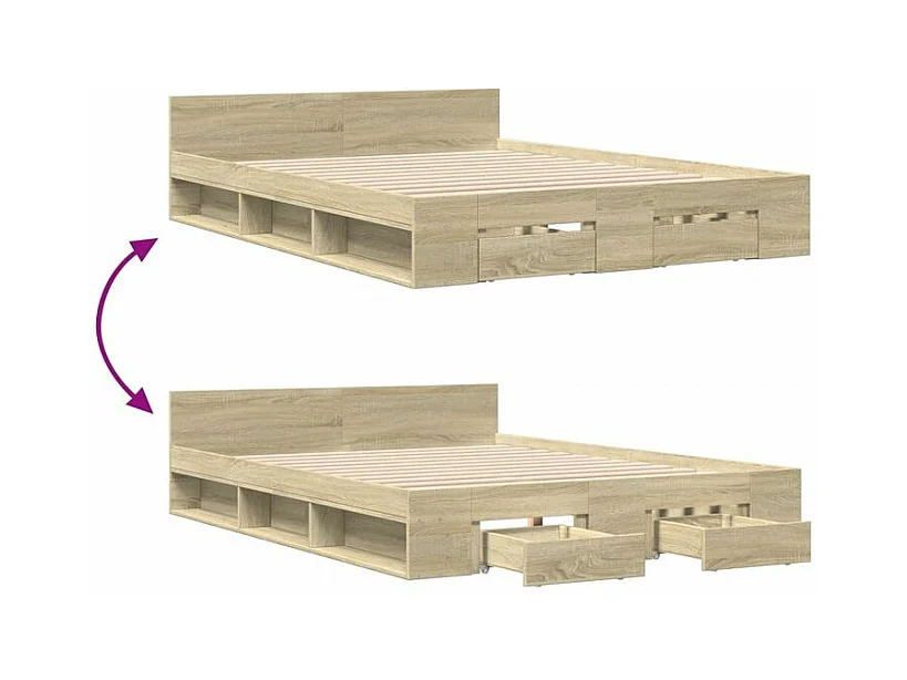 Cadre de lit et tiroirs chêne sonoma 150x200 bois ingénierie