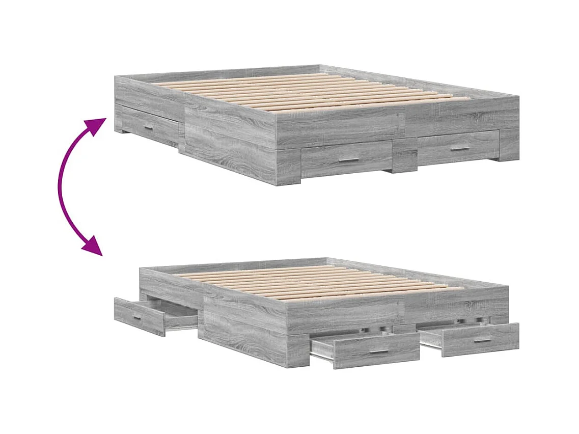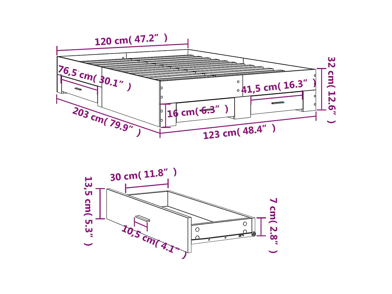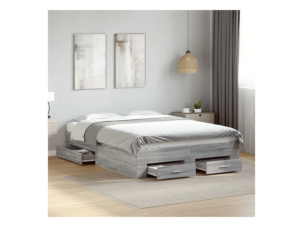 Cadre de lit et tiroirs sonoma gris 120x200 bois d'ingénierie