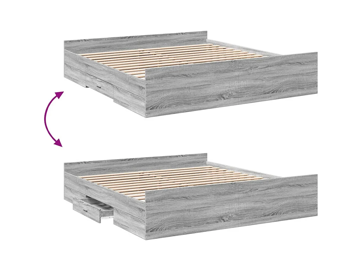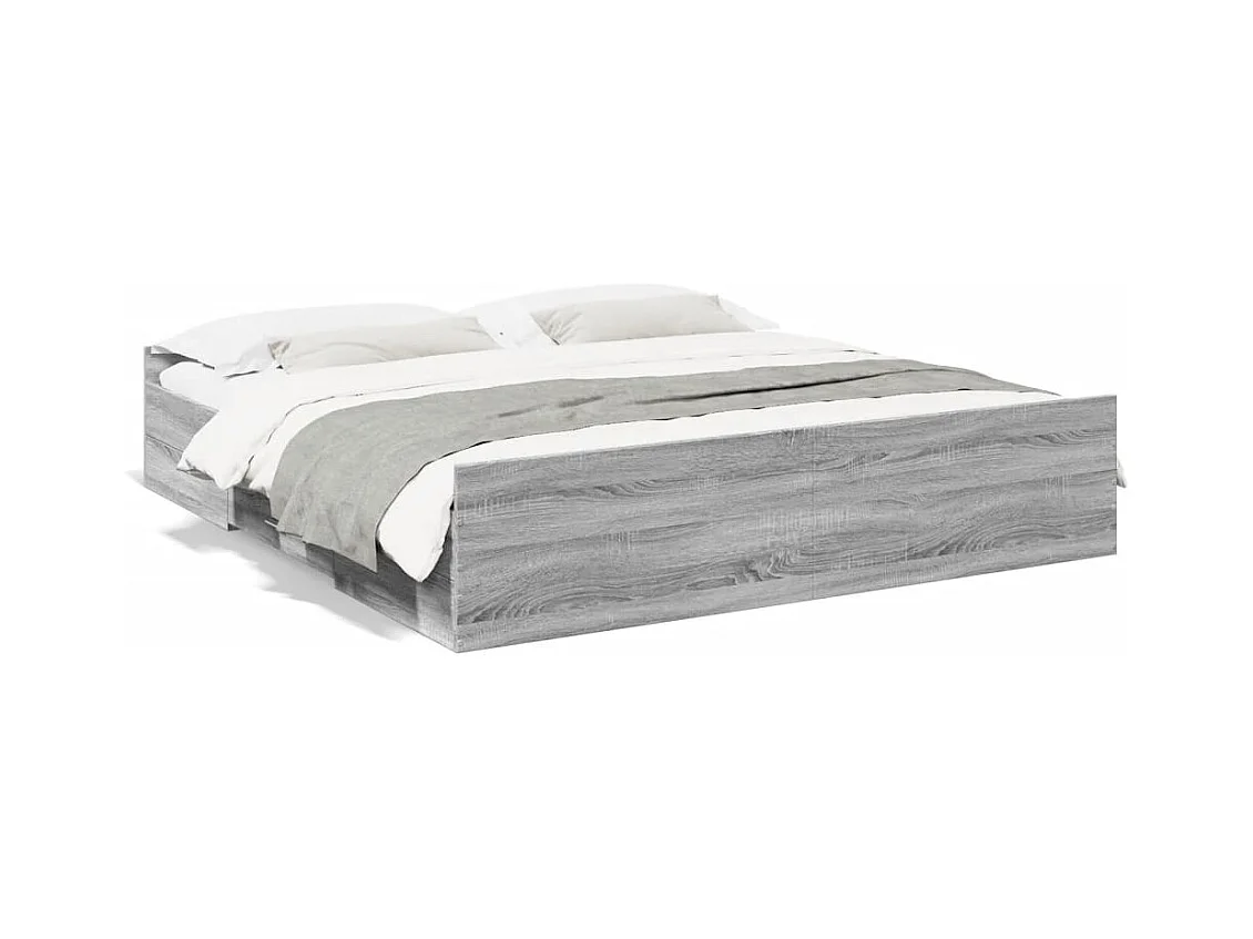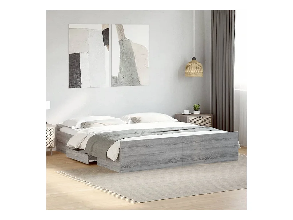 Cadre de lit et tiroirs sonoma gris 200x200 bois d'ingénierie