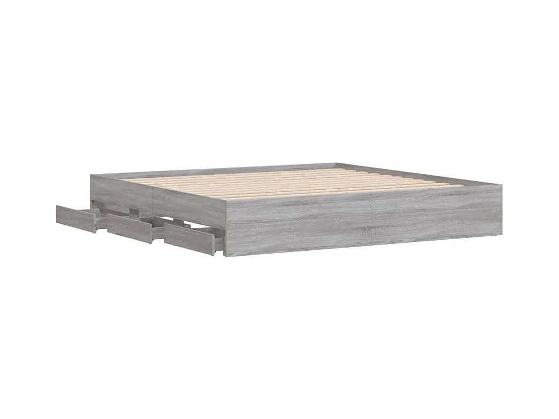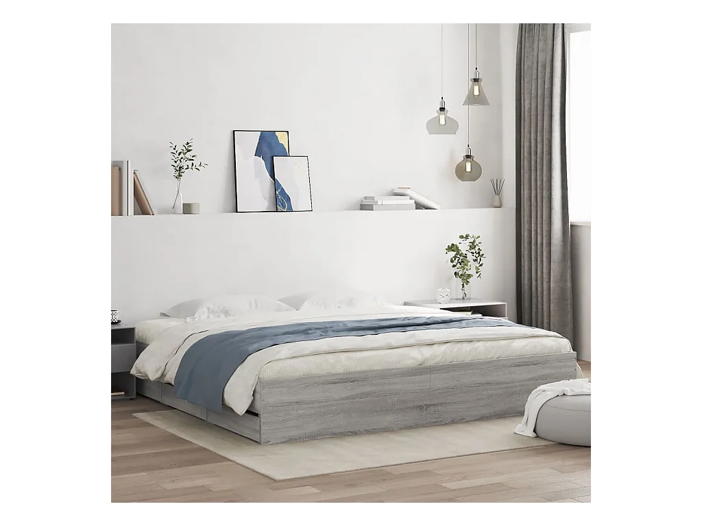 Cadre de lit et tiroirs sonoma gris 200x200 bois d'ingénierie
