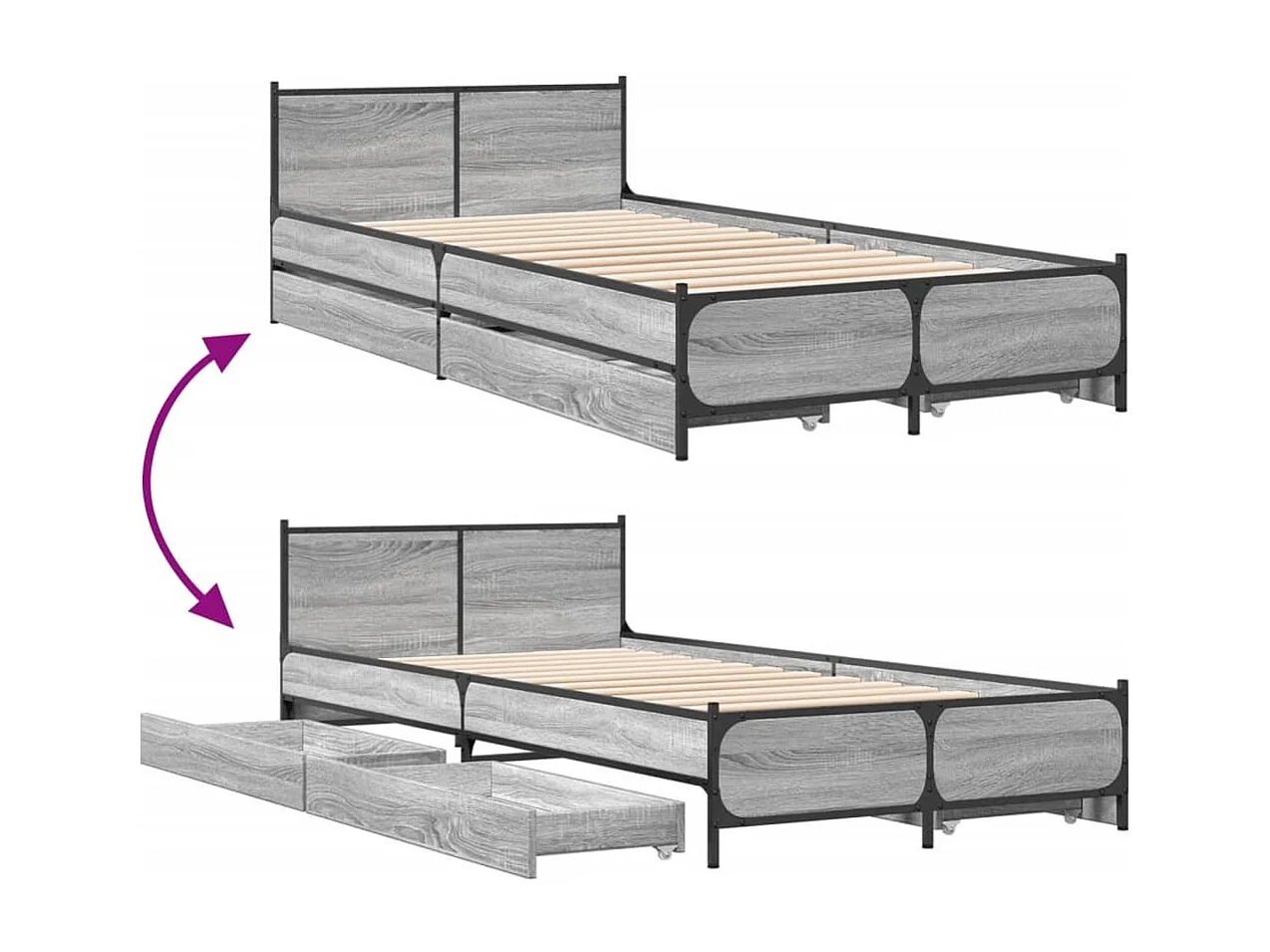 Cadre de lit et tiroirs sonoma gris 75x190 bois d'ingénierie