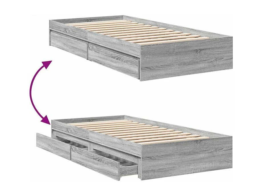 Cadre de lit et tiroirs sonoma gris 90x200 bois d'ingénierie