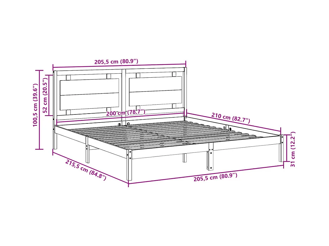 Cadre de lit extra long sans matelas 200x210 cm bois massif